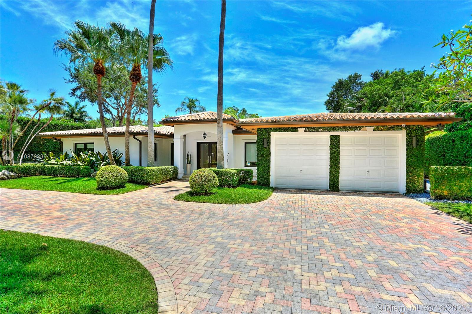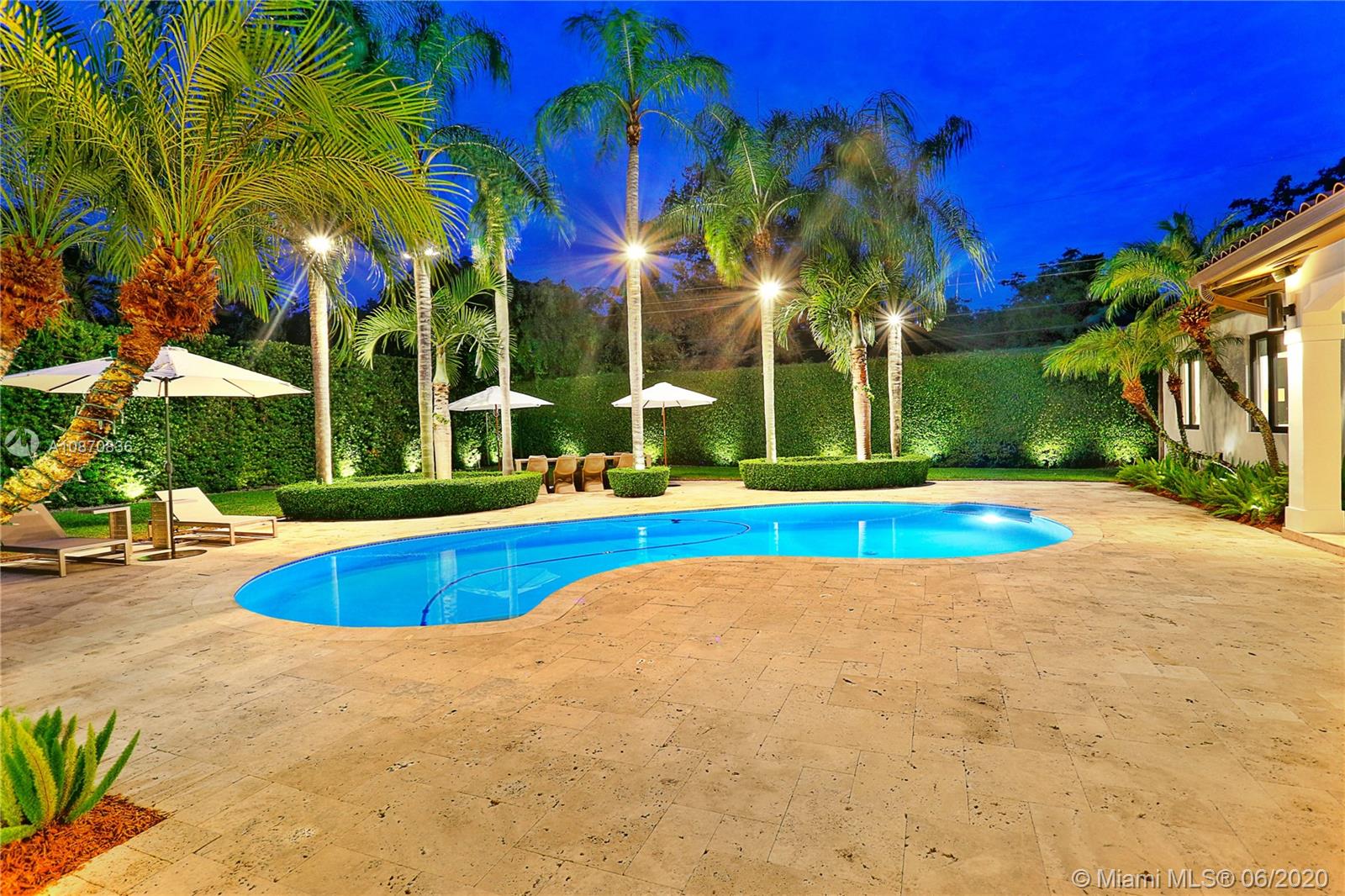 This magnificent 5 beds/4.5 baths gated smart home with pool is nestled on a 19,215 sq ft lot in the desirable Ponce-Davis Platinum Triangle of Coral Gables. Updated beautifully with lots of custom amenities will captivate you from its oversized circular driveway to its gorgeous backyard surrounded by lush tall privacy hedges! Features: 2-car garage, new impact windows & glass doors & shades, custom-built sleek kitchen with wood European cabinetry, quartz counter-tops, Viking appliances, high ceilings, working fireplace. Lots of techy systems: cameras, wireless alarm, intercom, smart control app. The Master suite has 2 custom-built walk-in closets, dual sinks, whirlpool tub & separate shower. Others: laundry room, linear air vents, partial generator, salt-water heated pool.
