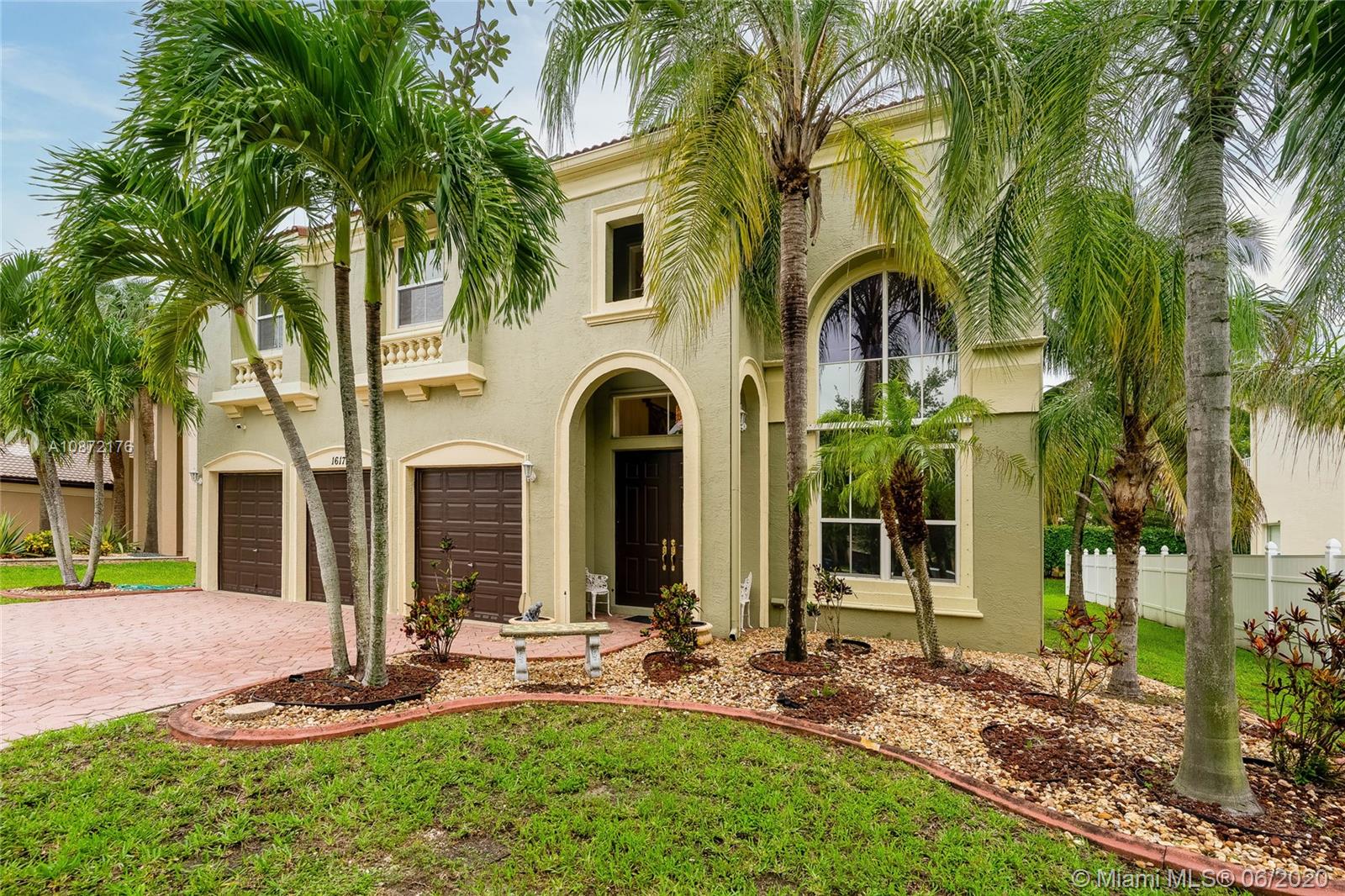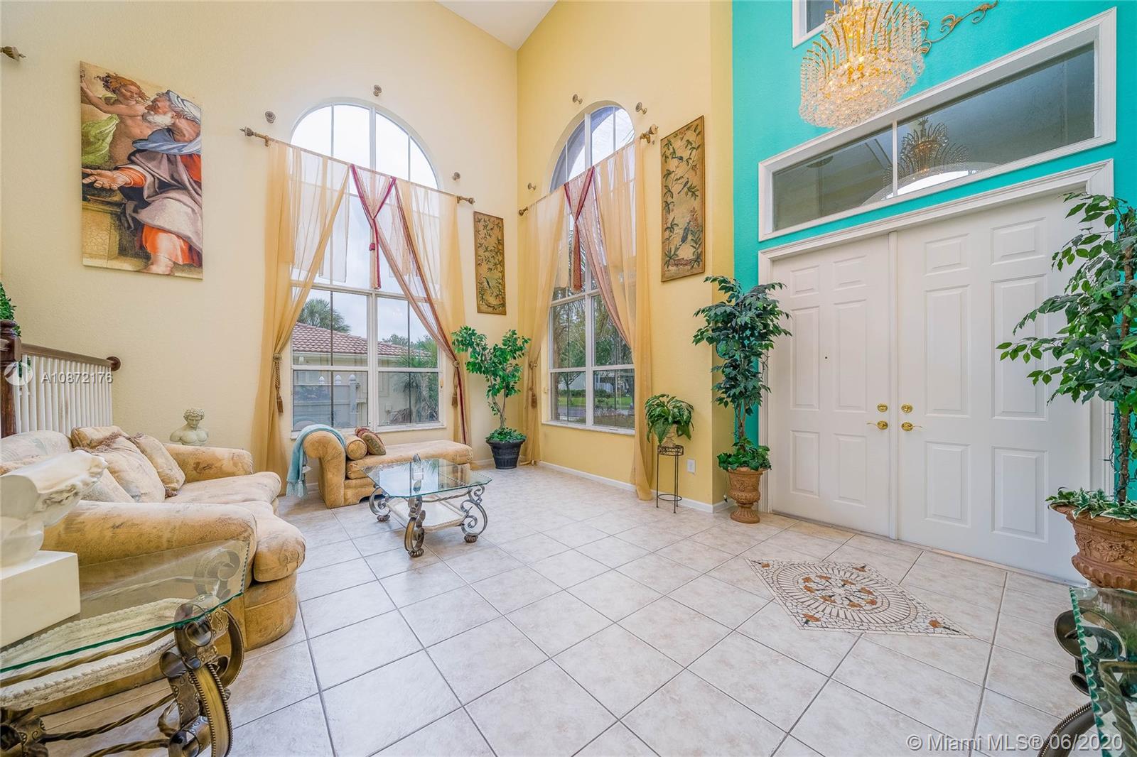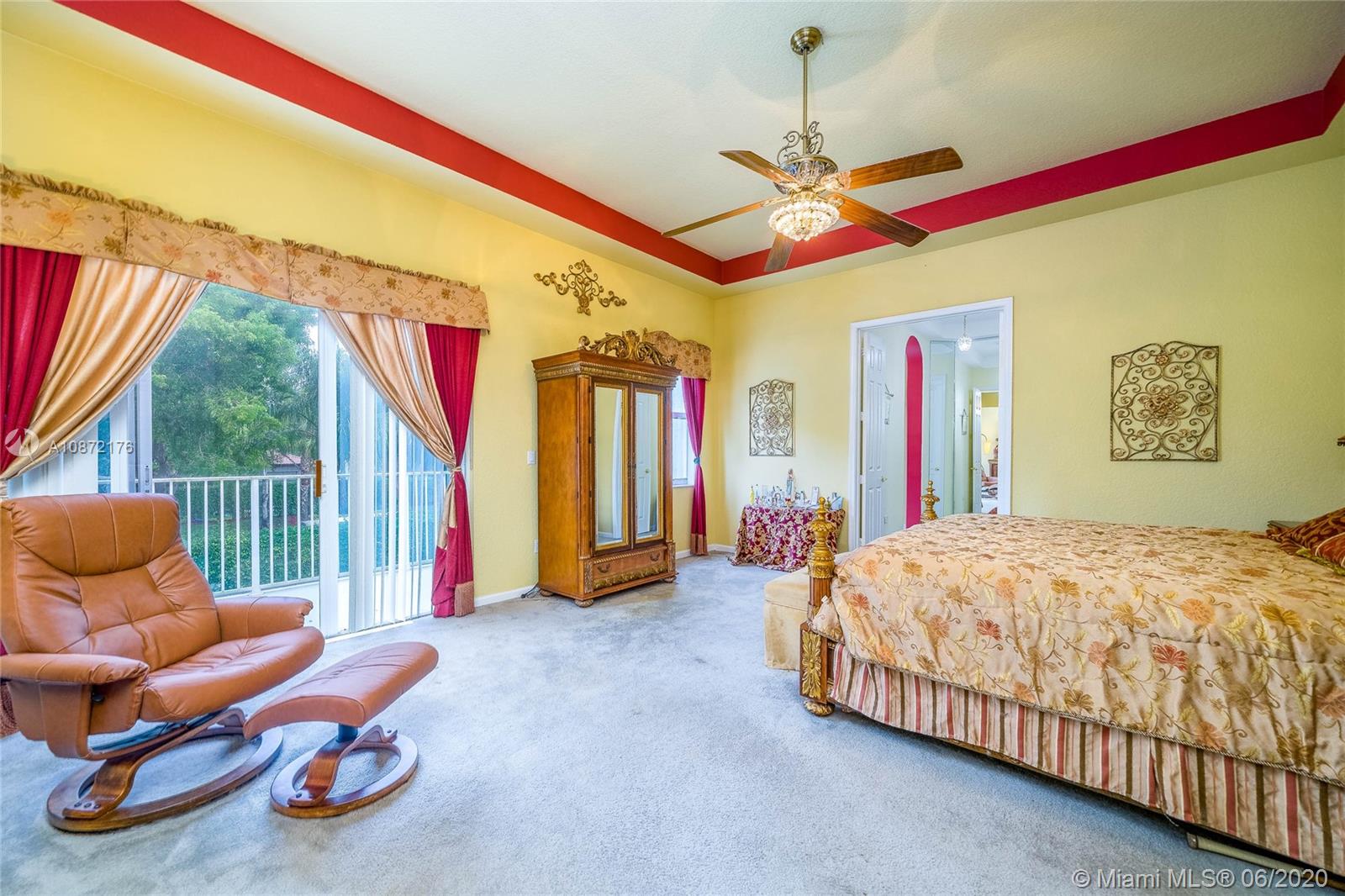 Enormous 6/4 w/office in sought after Rivera Isles! Impressive front, french door entry to the grand formal living & dining areas w/dramatic vaulted ceilings & large windows offering lots of natural light. Massive kitchen, w/breakfast nook offering a garden view. One full bedroom, office & cabana bath conveniently located on the first floor. Laundry room w/storage closet. Curved staircase leading to the expansive master suite, w/all bells & whistles, sitting area, walk in closets,open balcony & bathroom. Bedrooms 2 & 3 share a jack & Jill bathroom. 2 additional bedrooms share a bathroom. Excellent & very comfortable floor plan. Perfect for a large family. Backyard w/Built in grill, Hurricane shutters. Great amenities, including guard at the gate, community pool, club house & exercise room.