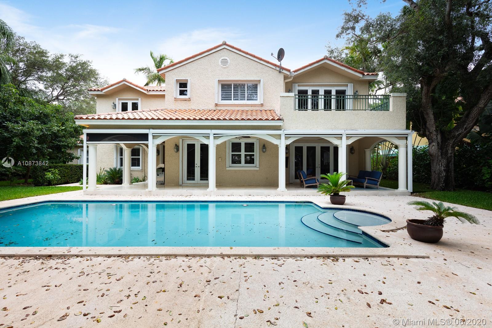 Located on an oak laden, private cul-de-sac street in prestigious South Gables, sits this 1992 built Mediterranean inspired home with majestic landscaping that will take your breath away. This 5 bedroom / 5 1/2 bathroom home exudes charm and elegance. Totally renovated kitchen, wood and marble floors, impact windows and doors, oversized entertaining areas, vaulted ceilings, lots of natural light, all ensuite bedrooms, and a 3-car garage. Perfect summertime entertainment on your covered terrace overlooking your oversized private backyard or hop on the Old Cutler bike path, Fairchild Tropical Gardens and Matheson Hammock Park just outside your door.