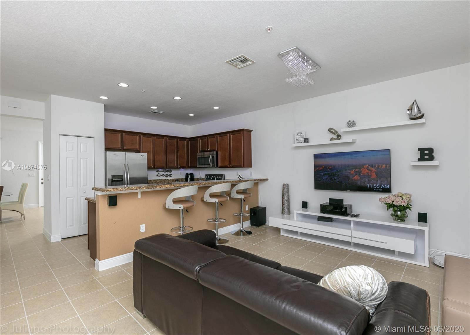 Welcome to this spacious and very well kept Townhouse located in the convenient, yet private development of Cobblestone. Best unit location in the community right in front of the children's tot lot. Two parking spaces! Designed and Built to the highest standards including Impact Windows and doors, concrete overlay in 2nd floor, dramatic 10' ceilings, fully upgraded kitchen w/ granite countertop and stainless steel appliances, ceramic and laminated floors throughout. It also comes with an additional water softener system, top-of-the-line Energy Star efficiency AC and appliances. Ready to move-in, recently painted and proud of ownership in every detail. The community of Cobblestone offers 24 hour manned gate, Clubhouse with recreation and fitness center, swimming pool, playground, and more!