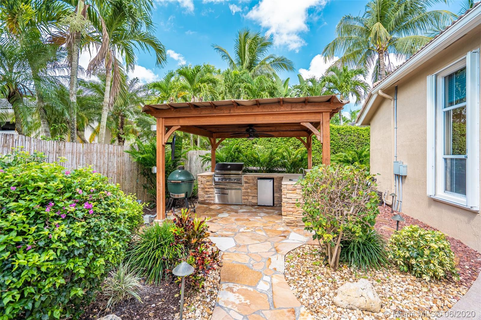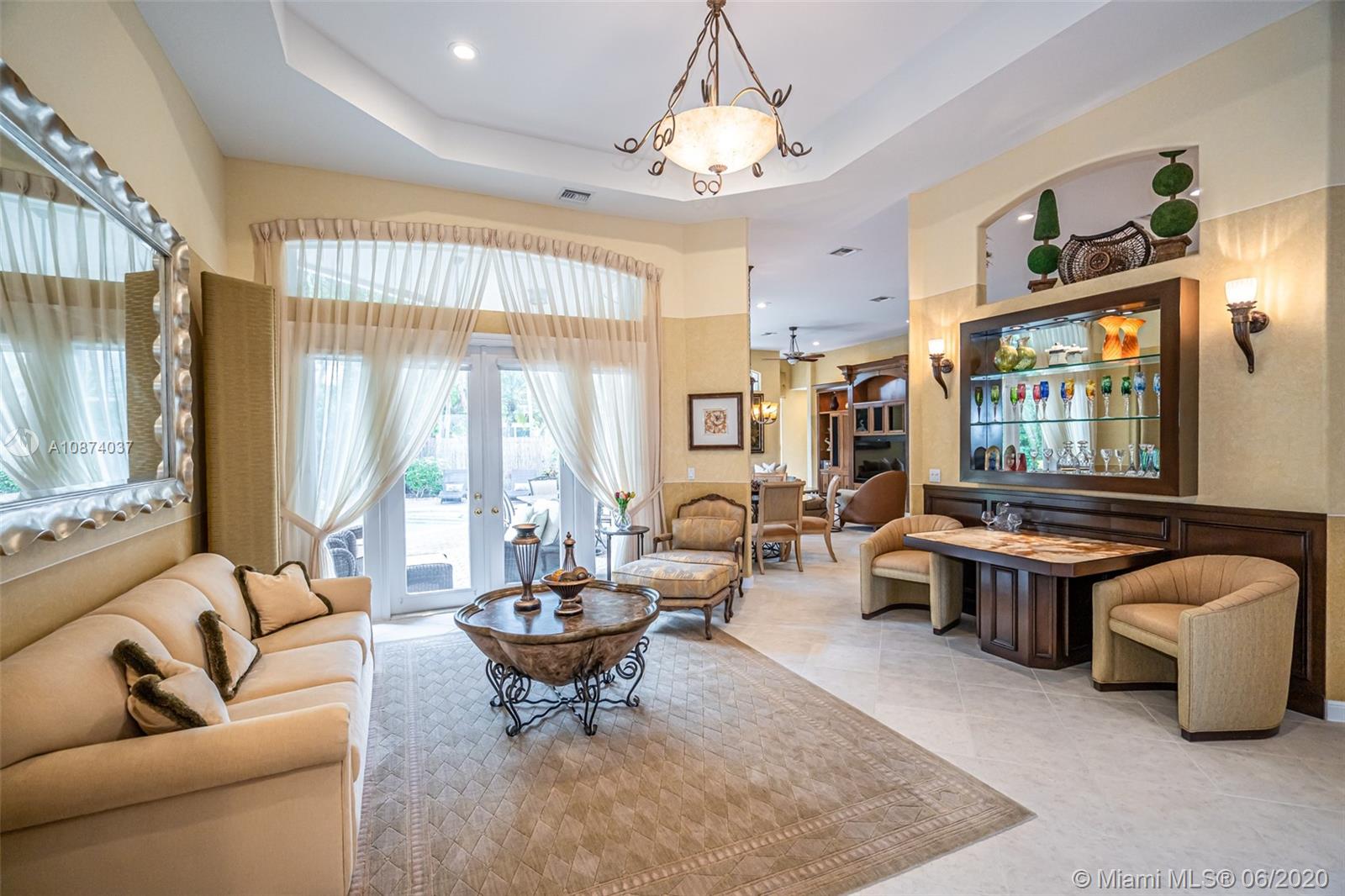 True Pride of ownership prevails in this immaculately kept spacious home featuring 5 bedrooms, 3 1/2 baths. This home includes large light neutral tile throughout main living areas and SOLID WOOD floors in 3 bedrooms & office. Complete with white kitchen, upgraded stainless appliances, 2 year New ROOF, 2 zone a/c with newer air conditioners, accordion shutters, custom built-ins in 5 walk-in closets & wall units & 3 car garage. If you love outdoor entertaining, you will enjoy the free form heated pool with south exposure, the shade of the pergola while BBQing in your summer kitchen, or just relaxing in the separate secluded hot tub. 5th bedroom is used as an office & has no closet. Quick move in available for you to enjoy the Fox Ridge community with 24 hour security, tennis, tot lot ++