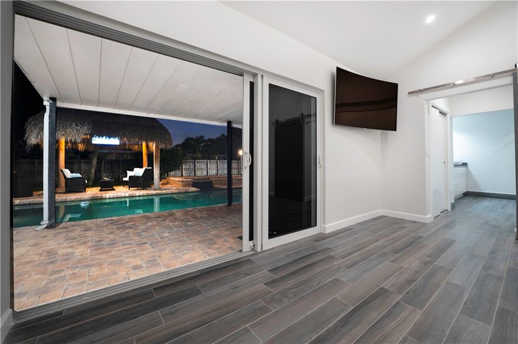 Come visit this updated, modern home at almost 3000 sq ft in highly desirable Boca Raton Square. This home features vaulted ceilings, highly durable porcelain tile floors, a Great Room with dry bar and 2 master suites, one with a loft office! Your dream Kitchen features a 9' x 5' island w/multiple storage & display cabinets, Quartzite counters, stainless steel appliances, 2 beverage/wine coolers and stand alone ice maker under the counter. Both the Kitchen and Master Suite have a direct view of the Tropical Backyard which includes 2 Pools, Tiki Hut, covered Patio, BOAT/RV parking and still plenty of yard space for your kids to play in. All underground cables, no powerlines! This home is just minutes from the boat ramp, beaches, Downtown, dining/shops, parks and all A-rated Public Schools.