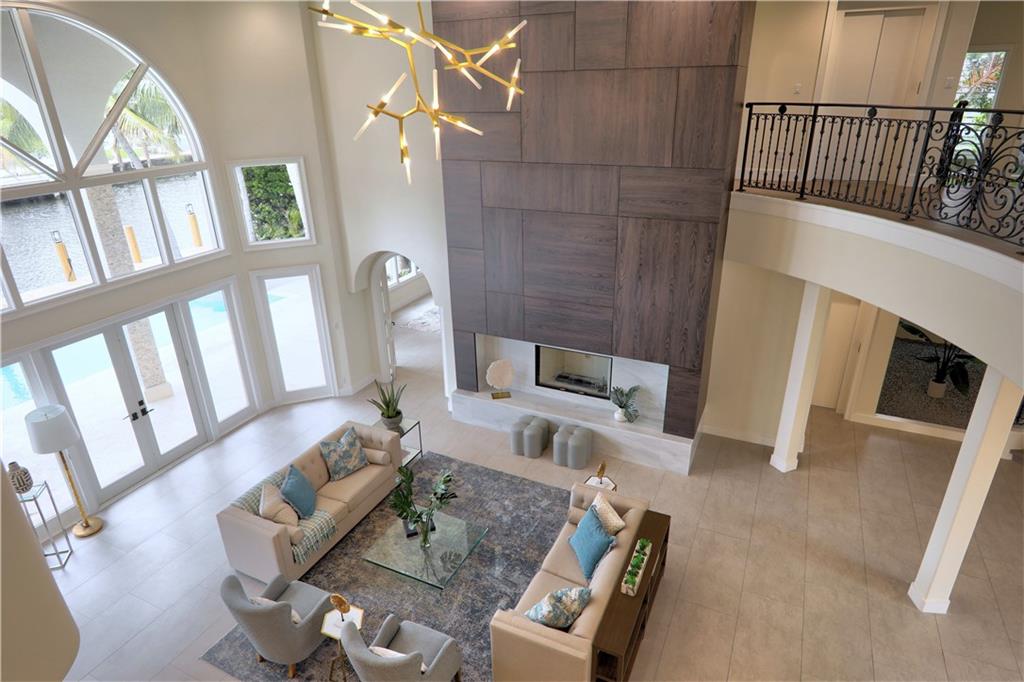 MODERN MEDITERRANEAN ELEGANCE | Imagine the luxurious life you can live in this newly completed waterfront estate. Best Value in Harbor Beach. Over 8,000 SF under air completely renovated inside and out, modern and traditional elegance blends seamlessly from room to room. Soaring ceilings and open floor plan make this perfect for entertaining. The incredible seamless modern chef's kitchen is truly a dream with whitewashed gray wood cabinets, waterfall countertops and a wall of stone operating as a focal point juxtaposed with windows showcasing contrasting greenery outside. New dock on 100' WF. Three car garage. Private Beach Club and Marina. Beautiful views of amazing mansions across the ultra wide canal. New Roof, Elevator. Entertaining room that can be converted to a home theater.