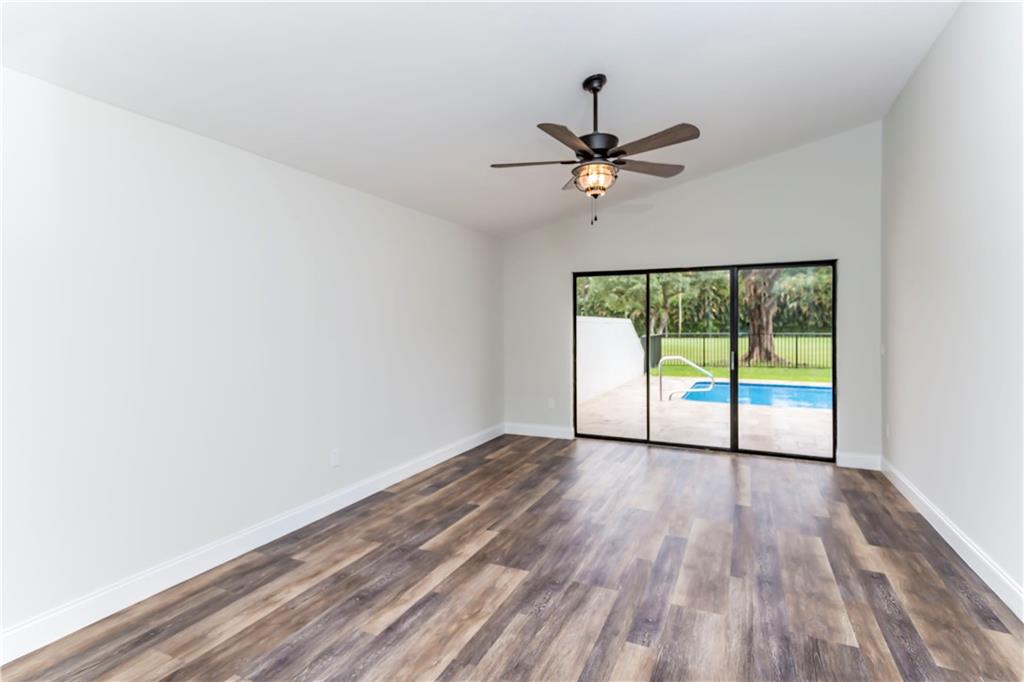 Completely remodeled 3/2 Single family pool home with all the bells and whistles. Property features include: All new features include, custom wood cabinets, quartzite counter tops w/waterfall island, all black stainless steel appliances, copper island hood, complete wood look waterproof plank flooring, custom baths w/quartzite tops, 100% LED lighting throughout, totally remodeled salt system pool, travertine patio, walkway & driveway, new A/C, 2009 newer roof, hurricane garage door, laundry room/new washer/dryer, new fence and freshly landscaped and painted int/ext.