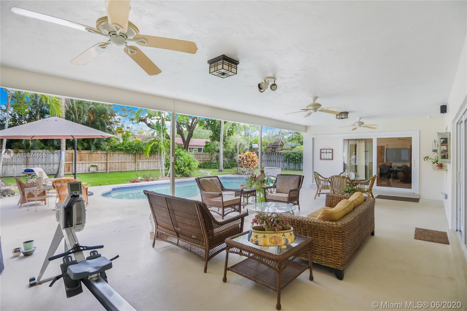 Beautifully updated four bedrooms, three bathrooms, pool home in the desirable neighborhood of New Orleans Villas. The kitchen is equipped with designer-quality finishes including Kitchen Aide stainless steel appliances, cooktop hood, a wine fridge, granite countertops, stand-alone island, and a spacious eat-in kitchen area. Other features include a formal dining area, private bar, hardwood floors, crown molding, custom window coverings, Impact windows and doors, updated bathrooms, newer barrel and flat roof, new pool and sprinkler pumps, new washer, and dryer. Perfect for entertaining, this home offers a large covered patio with an expansive, lushly landscaped backyard, fruit trees, pool, and fully fenced backyard for privacy. This home is a must-see!