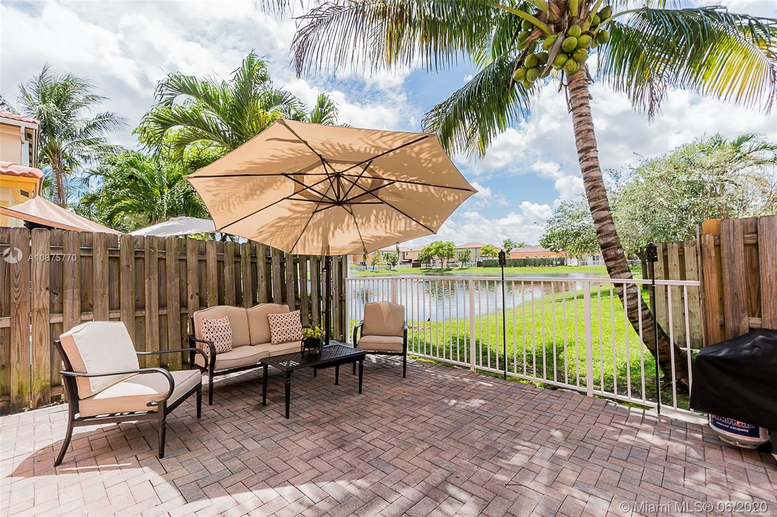 Relax in this backyard oasis with the sound of the lake waterfall back drop and fresh coconuts hanging from your palm tree! Best Location in Doral min from Turnpike exit and Dolphin Mall. Enjoy clubhouse with pool. The best Doral parks down the street and A+ Schools. This home is immaculate with NEW epoxy garage floors, large open space, full bath and bedroom on the first floor. Enjoy soaking tub and large master bedroom with a second floor laundry complete with NEW TOP of the line appliances. Security camaras included. This is the home you've been waiting for.