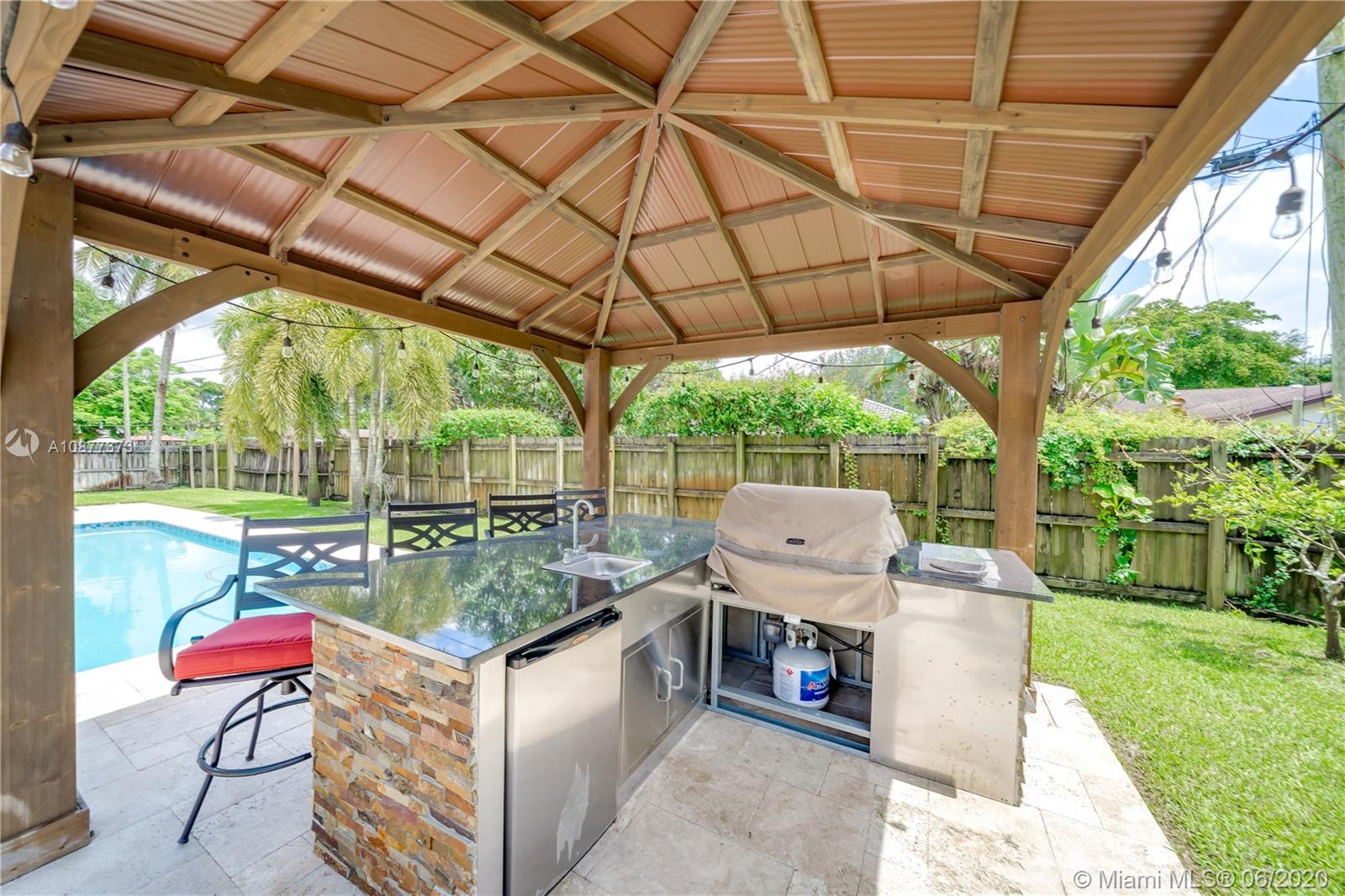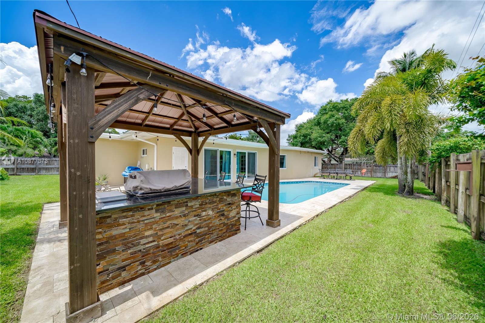 4/3 2,928 liv SF upgraded, turn-key smart home w/tons of features & room inside & out. Entertain around the pool on your large corner lot w/fence, mature fruit trees, covered outdoor kitchen, swing set, & butterfly garden. Split & open floor plan w/2 AC units, w/formal dining & living, family, enclosed FL, office/bonus, laundry rooms & 2 car garage. Hurricane ready w/impact windows/doors. Control your home by voice & phone w/Echo smart system. Plantation shutters for every window, hands-free kitchen faucet, new plumbing, fresh paint, wood-burning fireplace. Kitchen boasts SS appliances w/island & marble-topped countertops. Tile throughout w/wood-tile in bedrooms, updated bathrooms, huge master walk-in closet, closet organizers for every room. Covid regs apply to showings-masks/min ppl etc