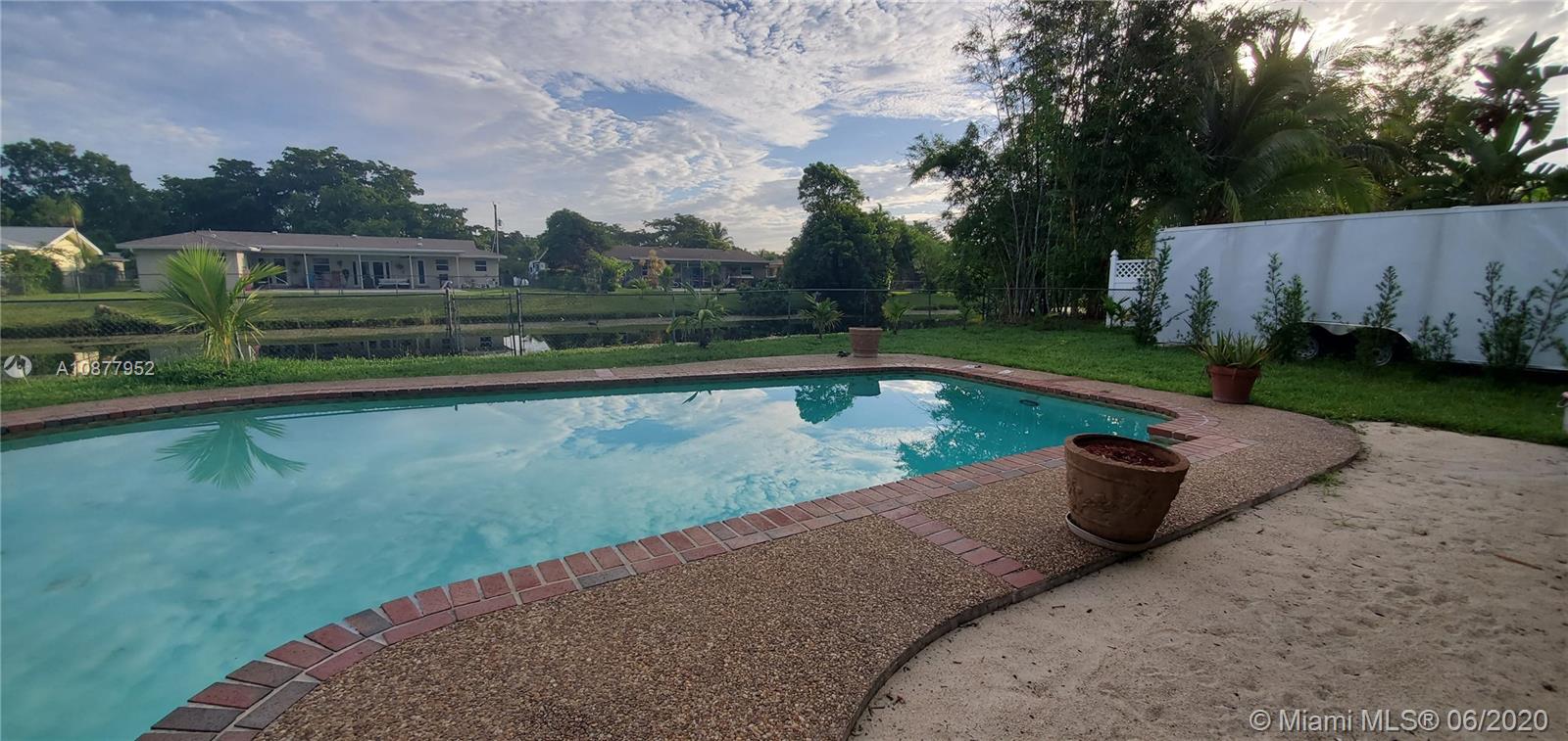 Wow! this house features a tropical paradise in your own large, fenced in backyard! Pretty canal view with large pool with extra space for entertaining. 3/2 with a circular driveway. Ceramic tile floors in the living areas. New California Shutters, new LED lighting & new ceiling fans. The kitchen has lots of windows and stainless steel appliances . Master bedroom window overlooks the porch, pool and pretty backyard and has a cabana bathroom. The two car garage is dream work space with 468 sq ft & new florescent lighting. Enjoy a newer roof! There is No HOA & plenty of parking for cars, boats or RV's behind the fence. True Florida living! Walk or bike to 2 local parks and schools. Central Plantation location with easy access to major roads, shopping and Ft. Lauderdale Int'l airport.