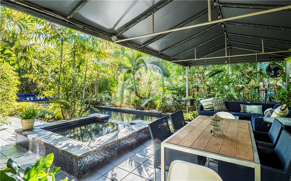 One-of-a-kind award-winning mid-century modern home was originally designed by Robert E. Hansen and carefully renovated by its current and second-ever owners. Sunbathed rooms offer vistas of the beautifully landscaped and private property--a tropical garden housing a collection of rare flora from around the world. Dazzling terrazzo composed of green carrara marble, jade, and iridescent stones spans the entire first floor. Open living area with vaulted ceilings ideal for modern entertaining. A heated saltwater pool and hot tub were added in 2017 to complete the outdoor oasis. Located on a quiet street a short walk to Wilton Drive.