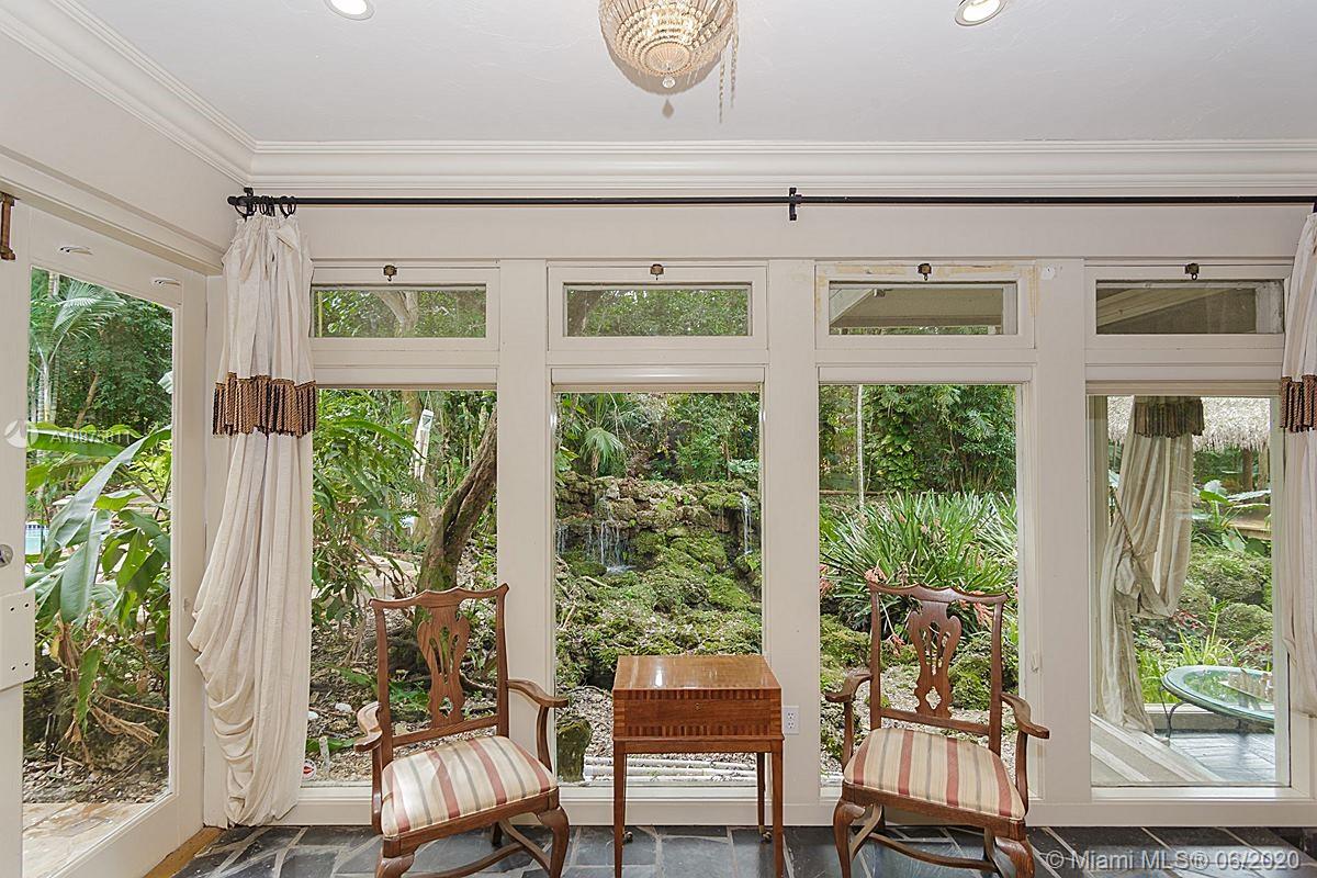 Buyers/Investors - a rare find in Devonwood, priced to sell. Mid-century modern home, 6120 SF, on lush tropical half acre. Great floor plan with light-filled formal living & dining rooms, slate floors & fireplace. Huge eat-in kitchen, family room with wet-bar, study or in-law’s room on the 1st floor, elevator & oversized 2-car garage. There are 5 bedrooms on the 2nd floor including a large master bedroom w fireplace & balcony that overlooks a very private pool-patio, chiki hut & stunning coral rock waterfall. The marble master bath has two cedar walk-in closets.This is a fabulous home that needs updating but is perfect to modernize into a dream home for raising a family and entertaining. Roof 2014, 4 AC’s, security patrolled, Pinecrest schools.