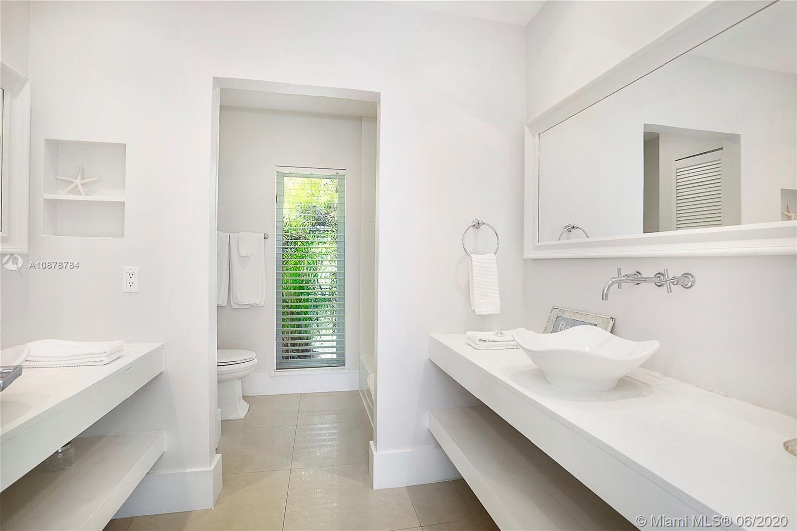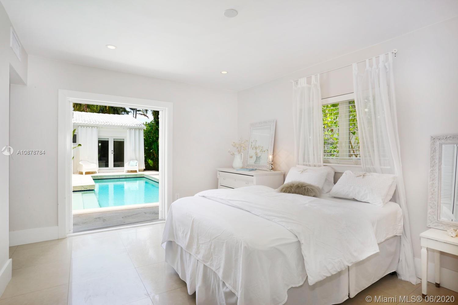 Ultra-private & serene retreat on a quiet tree-lined street in prime South Grove location. Stunning, light-filled living spaces w/ high ceilings & white-washed oak flooring. French doors throughout, overlook tranquil pool & lush tropical gardens & terraces that surround the home. A white color-palette provides the ideal backdrop for art collections. Renovated, custom kitchen opens to adjacent breakfast area. Formal living, dining & family rooms as well as two master suites (one up & one down) each w/ private sitting areas and luxurious baths w/ soaking tubs. Gated, covered parking for 2 cars + guest parking for 3+ cars. Walk to the Grove village center’s, boutiques, cafes and bayfront parks & marinas. Also just minutes to downtown Coral Gables & South Miami world-class shopping & dining.