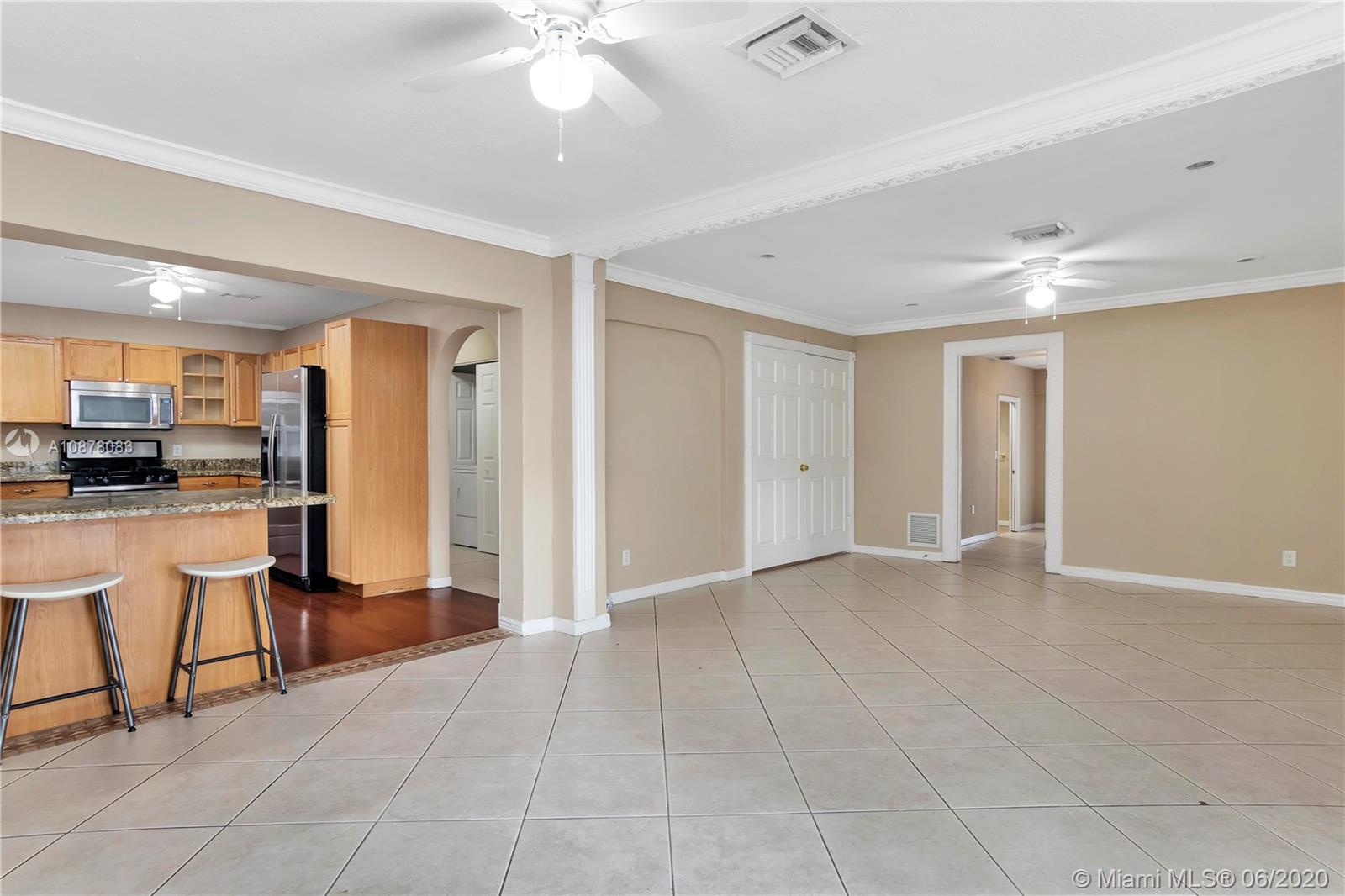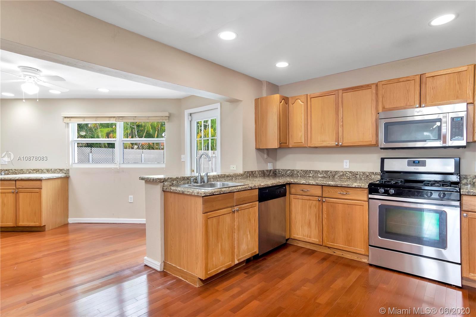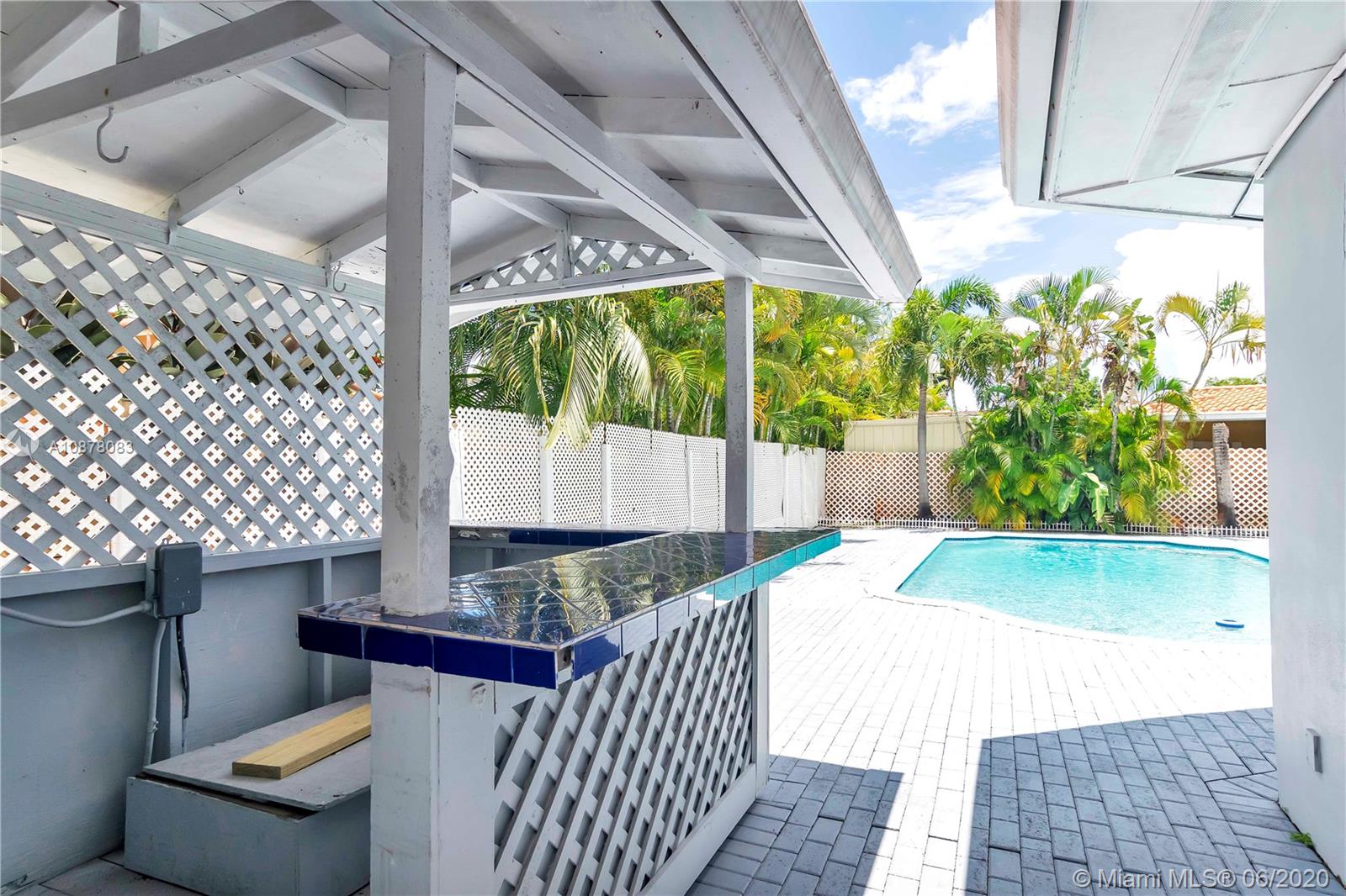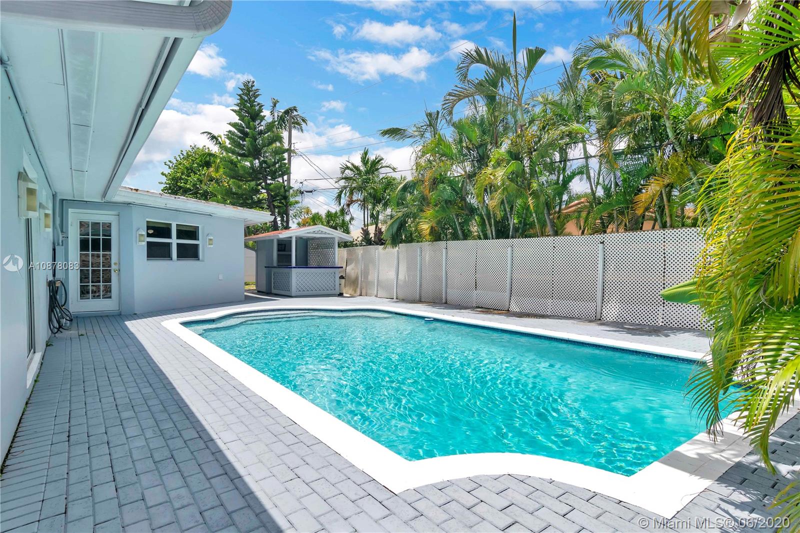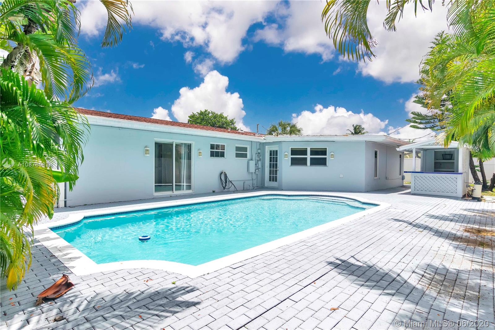 MUST SEE Large Pool Home with over 2400 SF. This beautiful home features 4 Bedrooms, 3.5 Baths. Large Updated Kitchen with breakfast seating area, perfect for entertaining, granite countertops and Stainless Steel appliances. Two master bedrooms. Walk in closets. Two full baths have Marble, Tile Wood and Granite Finishes. Tile and Wood Floors throughout, Spacious living area features living room & Family Room with Wet Bar Leads out to the large Pool area w/Service Bar perfect for entertaining. Laundry room. Lots of closet space. Fully Fenced in Yard, French Doors, Hurricane Panels. Oversized paver driveway perfect to park RV, boat, large trucks or other entertainment vehicles, Freshly Painted Exterior. Conveniently located on the East Side and not far from the beach.