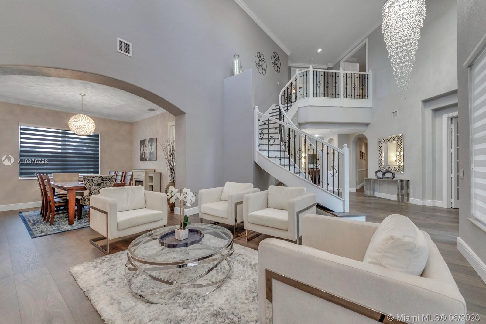 WoW! Big, Bold & Beautiful! Tastefully updated with a contemporary flair, this lakefront home is perfect for enjoying the Florida lifestyle. 5 bedrooms, 5.5 bathrooms + office, 20x14 playroom and loft spans 5365 sq ft (inclusive of 1/1 guest house). Grand entry with volume ceiling and elegant custom staircase welcome you home! Center island kitchen w/breakfast nook overlooks the family room. Luxurious master wing w/sitting area features 300 sq ft balcony allowing you to experience breathtaking sunsets from your private suite. The resort-style backyard features a travertine marble patio and summer kitchen w/built in grill+Argentinian BBQ, perfect for outdoor chef. Heated and salt freeform pool+spa is surrounded by lush tropical landscaping. Guard gated community w/pools, ballfields etc.