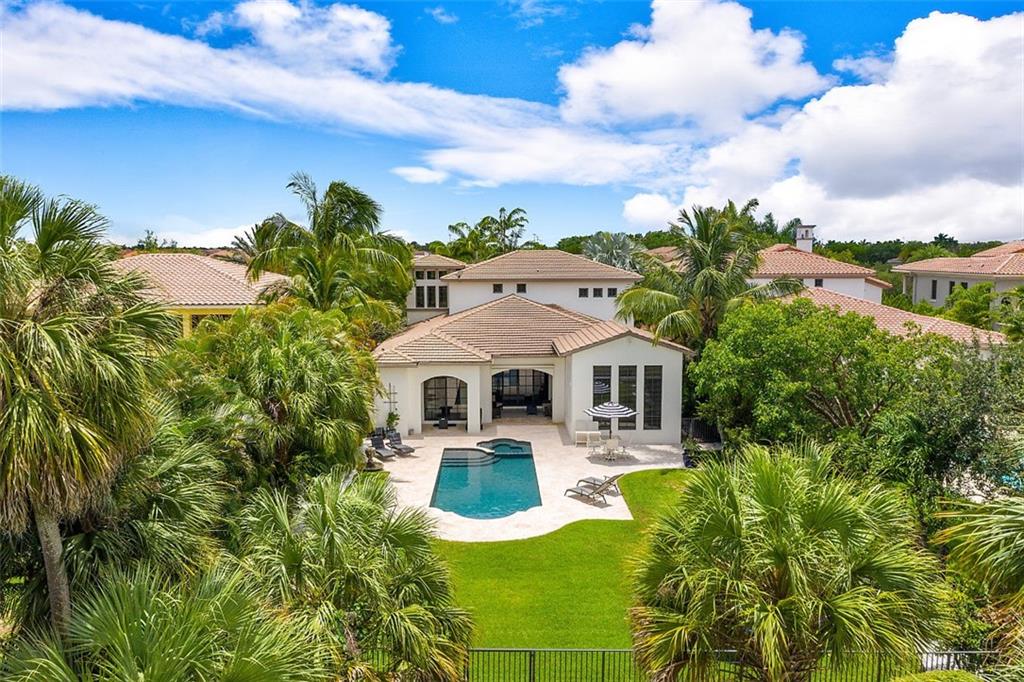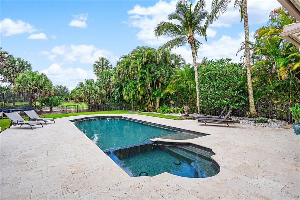 This totally Updated Beauty is the former home of New York Yankee Coach Joe Girardi & is situated on the golf course. Impressive curb appeal w/stack stone accents, perfectly manicured landscape, balconies, & a courtyard. The New Crisp White Kitchen is constructed with the finest materials, features a large island, & is truly gorgeous. Soaring ceilings & Expansive windows create a light/airy home & allow for serene views. The open great room/kitchen area offers a bar, glass doors leading to the loggia & is perfect for indoor/outdoor living. The luxurious master suite features a spa like bath. Newly remodeled pool & porch area w/a heated salt water pool, spa, marble pavers, under roof porches w/remote control roll up screens & beautiful frontage of the golf course. 5th bedroom is an office.