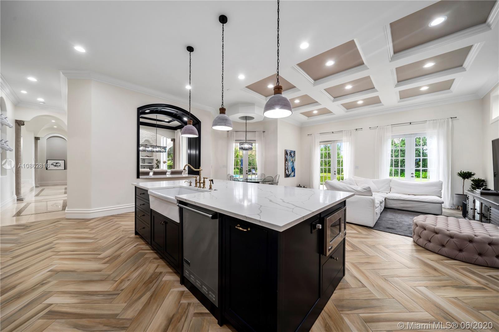 Magazine-quality custom home owned by a GC and finished to the nines! HOA cameras at entrance to this dead-end street evokes a private community. Impeccable landscape design by John Zito. Backyard with travertine pool deck, ample grassy area & speakers is a complete stunner! We dare you to find a more exquisite backyard at any price! Interior drywall & floors all insulated & electricity is hard-wired to all windows (all impact). Great flow downstairs w/airy 12-foot ceilings (31-feet in foyer). Showcase kitchen features 1-year old custom cabinetry, Viking Pro appliance package w/ 6 burner gas stove & huge island. Additional features include Herringbone Italian porcelain floors, real brick wood/burning fireplace & 5/8-inch drywall. New exterior paint! Can be sold furnished.