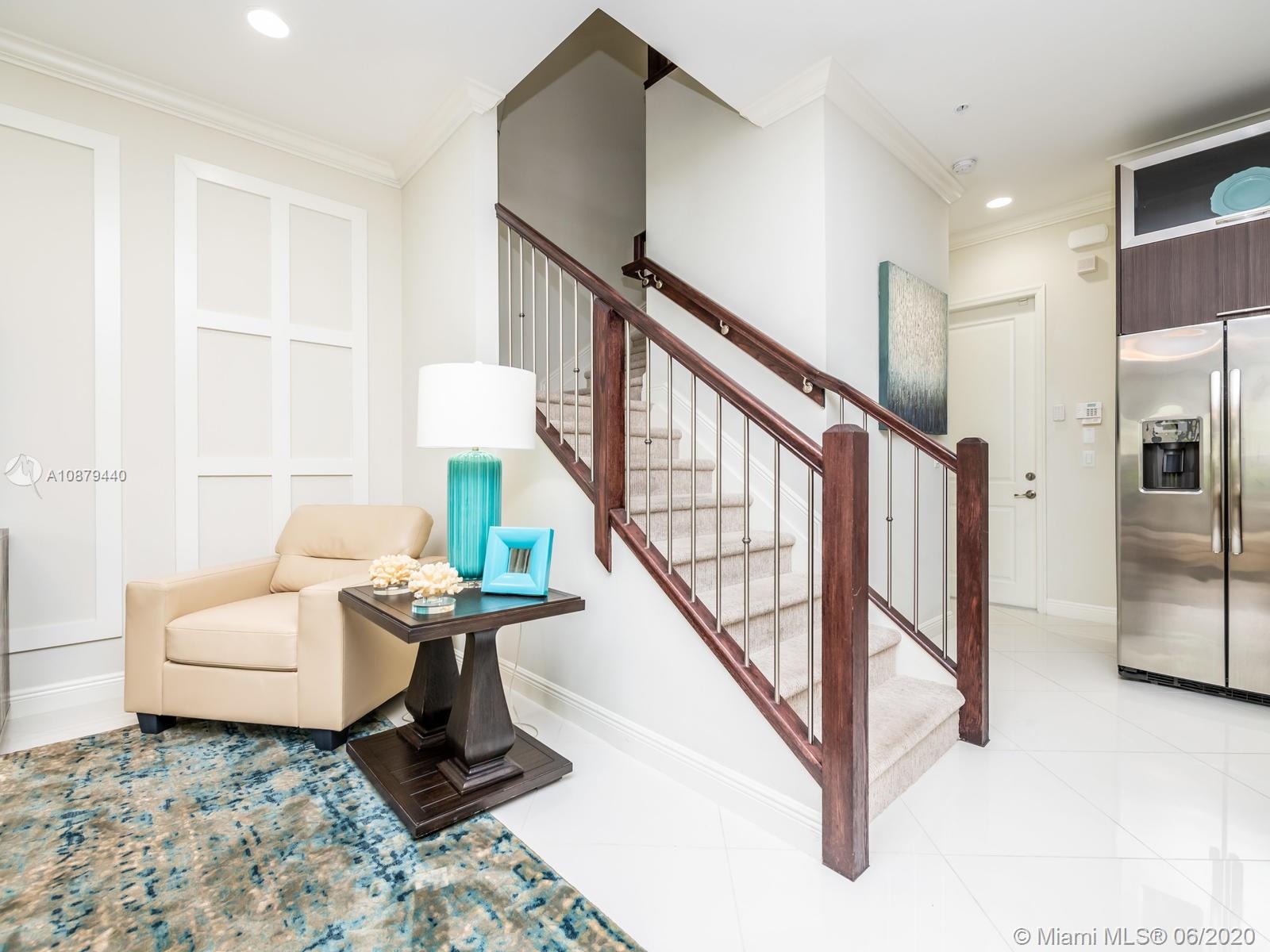 Fabulous Move-In Ready! Imagine owning a Former Luxury Pristine 4/3/1 Sky Model in Centra Falls with Elevator/Perfect Pool View/Impact Windows & Doors/Gorgeous Lighting /Window Treatments/ 10' ceilings. 2 Car Driveway /2 car garage-walk right in your kitchen/livingroom/dining room /1/2 bath on 1st floor. Stainless Steel Appliances, quartz countertop kitchen island /Upgraded Cabinetry. 2 Terraces with covered entry patio! Beautiful modern granite bathrooms! 3 bedrooms on the 2nd floor with the washer/dryer/laundry sink. The master bd offers /balcony/walk-in closet .The 3rd level has a bed/bth/terrific expansive open space/wood look tile floors in family room, inside kitchenette/mico/sm refrig/large outside terrace w/ bar-b-que, sofa, cabinets and sink. Amenities: Pool/Fitness Center/Gated.