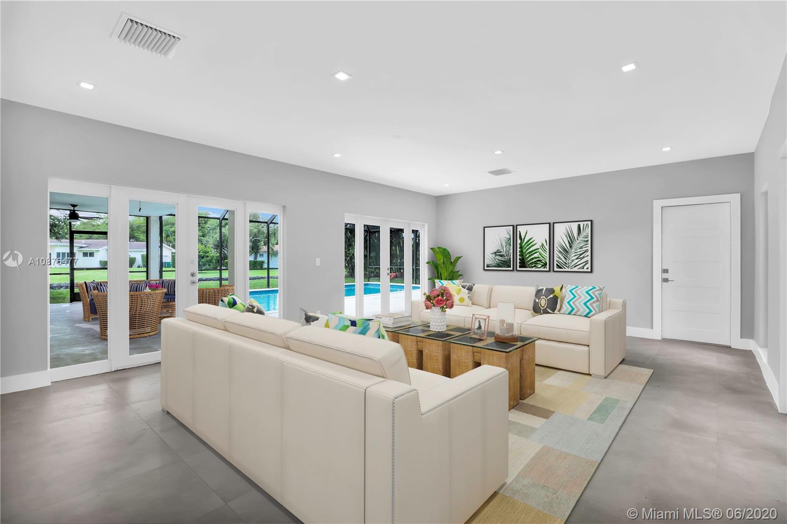 Stunning and beautifully remodeled waterfront 4 Bedroom 2 full bathroom home offering 3,257 total square feet on a private cul-de-sac street in Pinecrest, Florida. This house has it all! Enjoy the beautiful panoramic views from the bedrooms, formal living, dining, and covered terrace of the water. New porcelain floors, new bathrooms & bathroom fixtures, new A/C, Hurricane Impact resistant windows & doors, newly refinished pool with new pool equipment, luscious tropical landscaping & mature trees. New kitchen and bathroom cabinetry throughout, new stainless-steel KitchenAid Appliances with gas stovetop. A great open floor plan that flows harmoniously. This home has not been lived in post-renovation. Be the first one!