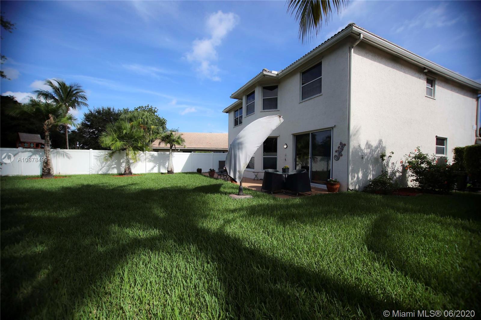 A Lovely & spacious two story home with 4 beds/2.5 baths in the neighborhood of Marina Pointe, Silver Lakes, in West Miramar. The 1st level features open space living with a formal dining, eat-in kitchen, large family room, equipped laundry room with sink, & guest half bathroom. An Upgraded kitchen with granite counter tops, SS appliances & 42" wood cabinets. Tile throughout on the 1st floor & wood on the 2nd floor. All bedrooms are located upstairs. Large master bedroom with a great den, office or nursery area so convenient for these times & two walk-in closets. Freshly painted inside. Ample fenced in backyard with room for a pool. 2 AC units, the 1st floor unit is new & the upstairs unit is around 5 years old. New water heather & sprinkler pump. Walking distance to the community pool.