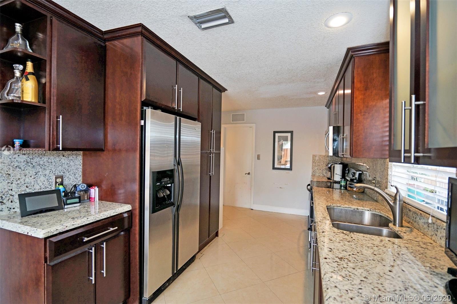 Come see this totally remodeled 3 bedrooms, 2 bathroom pool home in Weston's Bonaventure subdivision. Property features porcelain floors throughout, 42in wood kitchen cabinets with granite countertops & stainless steel appliances, front loader washer & dryer, travertine flooring in bathrooms, New AC Unit & Tankless water heater. The master has his & hers walk-in closets with built-in shelves & access to the backyard which is totally private with coconut trees, paver patio, & a newer heated pool. Access to the Bonaventure Town Center where there are pools, tennis courts, indoor racquetball & basketball courts, full gym, bowling, & much more. Low Hoa Fees ($45). Great location, minutes to Publix, restaurants, expressways, & "A" schools. Will not last! Lowest priced pool home in all of Weston