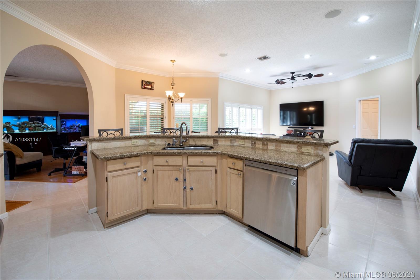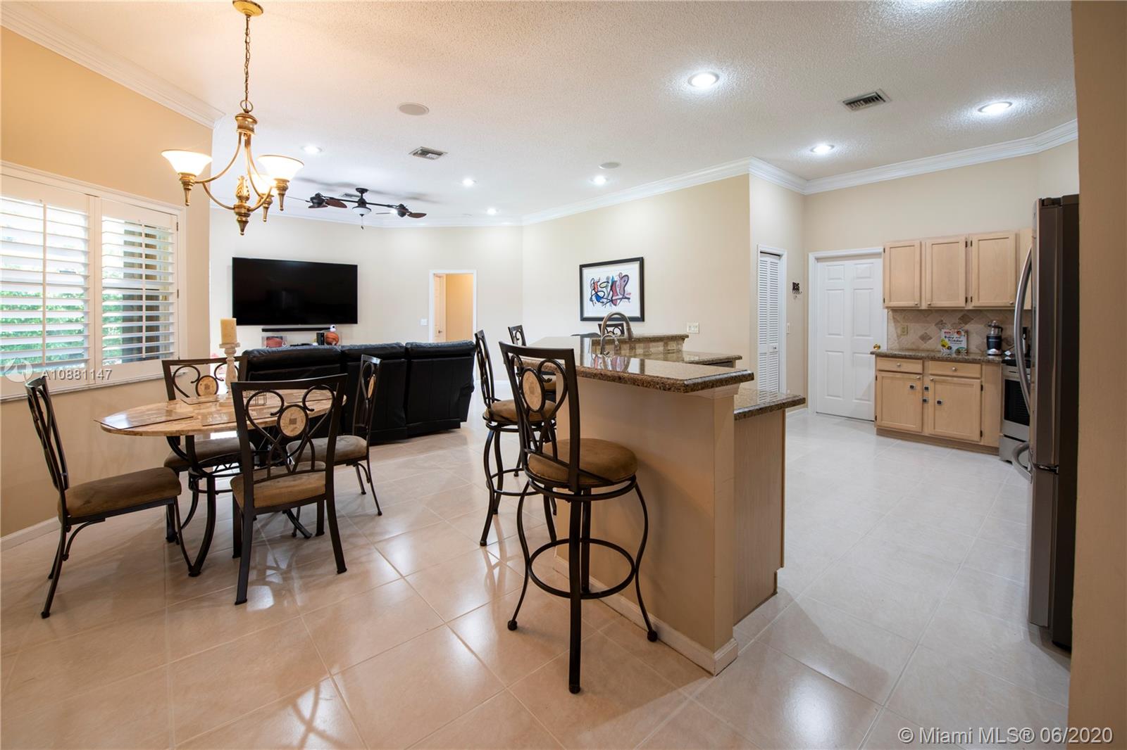 Come experience this beautiful home with 3 bedrooms, 2 car garage. 2016 Carrier AC with 2 sanitary lights, 2017 ROOF ! Accordian SHUTTERS. Newer fans and lights. OAK floors and 14'' tile thru-out. Beautiful landscaped entry, tiled drive and walkway. Granite kitchen and huge island, SS appliances all replaced in 2019, marble backsplash, reverse osmosis filter. Split bedroom plan for ultimate privacy. Master suite has double-door entry, dual sink vanity,separate tub and oversized shower, oak floor walk in closet, coffered ceiling and entry to the patio. INDOOR LAUNDRY with 2019 appliances! 3'' plantation shutters thru-out, thick crown molding, recessed lighting. 2 community pools,clubhouse,tot lot,tennis,basketball.