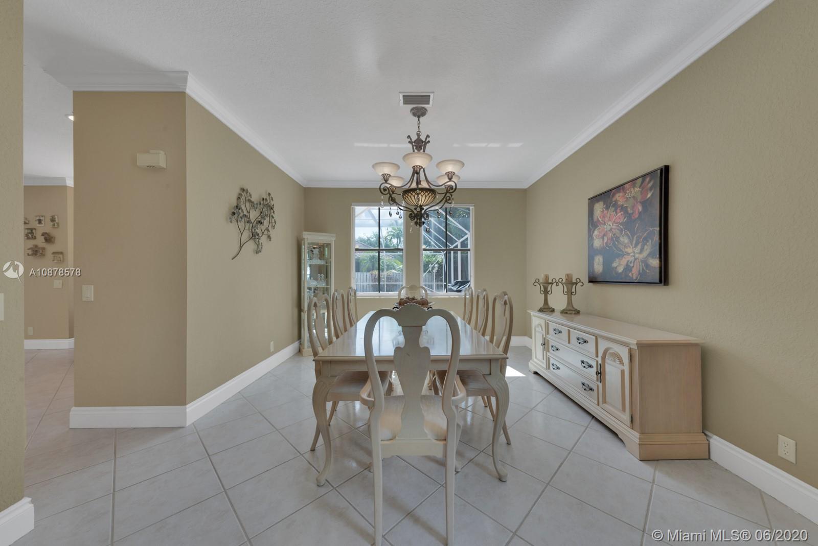 Rarely available! Stunning 5 bedroom + sitting room, 3.5 bathroom home with screened freeform pool and spa is surrounded by spacious paver patio providing lots of space for entertaining or just relaxing! The interior features a tastefully remodeled kitchen with all wood cabinets, undermount and overhead lighting, granite counter tops, marble backsplash and snack bar which overlooks the large family room. The upstairs has a triple split floor plan, perfect for any family. The master suite includes a sitting area, 2 walk-in closets and beautifully updated bathroom. Additional details include large neutral tile and wood flooring, crown molding, storage unit in garage, accordion shutters, paver driveway/walkway, accordion shutters and fenced yard. Guard gated community w/pool, play areas etc.