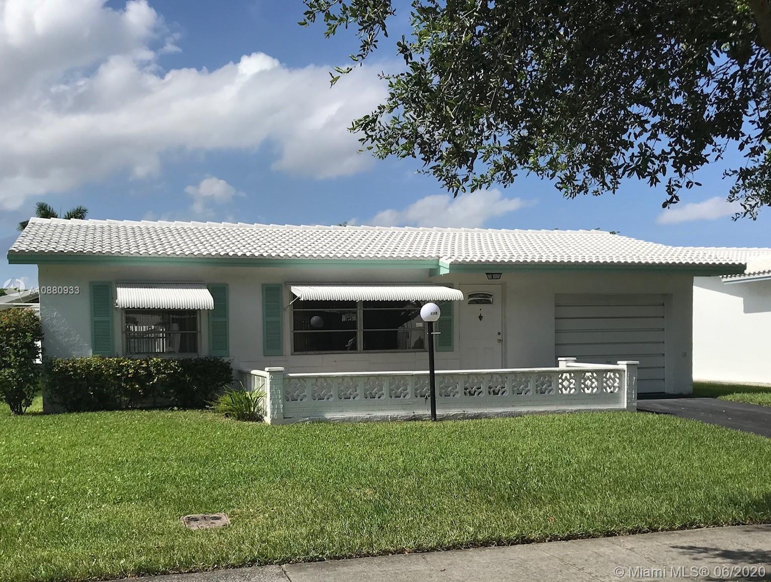 MOVE-IN READY! MINT CONDITION! PRIDE IN OWNERSHIP! FLAMINGO MODEL 2 BEDROOM/1 BATHROOM PLUS A ONE CAR GARAGE INCLUDING A FRONT PORCH FOR RELAXING OUTSIDE. AWESOME CLUBHOUSE WITH ACTIVE CALENDAR. SHUFFLEBOARD, BOCCI BALL, EXERCISE ROOM, HOBBY ROOM, CARD ROOMS, LIBRARY, BILLIARDS, PING PONG. HEATED POOL & SPA, SAUNA, SHOWERS IN DRESSING ROOM. SATELITE CLUBHOUSE W/HEATED POOL, SPA & TENNIS. HOLIDAY PARTIES & SHOWS. COURTESY BUS AVAILABLE. CLOSE TO GROCERIES, BANKS, PHARMACIES, HOSPITALS & RESTAURANTS. 30 MINUTES FROM FT LAUDERDALE AIRPORT. EASY ACCESS TO MIAMI & WEST PALM. 55 PLUS COMMUNITY. ASSOCIATION APPROVAL, 20% DOWN REQUIRED,720 CREDIT SCORE. SERVICE DOGS ALLOWED.
