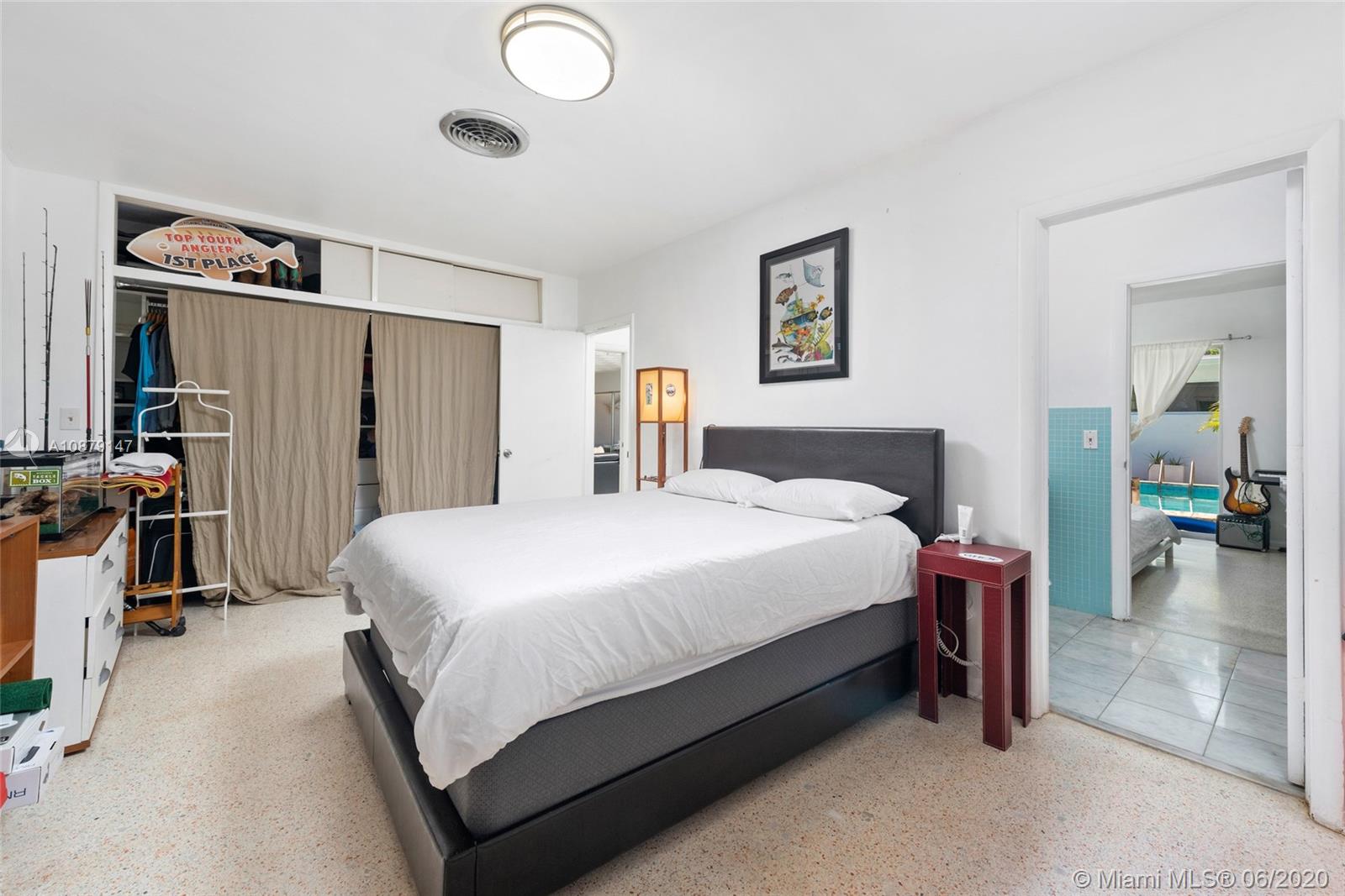 Restored & updated for modern living, this spacious mid-century gem was built to commercial standards in 1959 by a prominent developer as his personal home w/ an excellent 4bd/4ba split floorplan all on one story. Family room opens up to one of the largest courtyard pools in all of Surfside through ingenious sliding glass pocket doors that completely disappear seamlessly merging indoor & outdoor spaces. High end features include Nolte kitchen, Duravit bathrooms, custom terrazzo floors & new enormous detached converted activity center w/ guest quarters, laundry & can be used as a garage/gym/cabana. Situated on a corner lot, this already fantastic home has tremendous potential for future expansion. Partial impact windows & doors. 3D INTERACTIVE TOUR @ my.matterport.com/show/?m=1Hv84z5jVVd