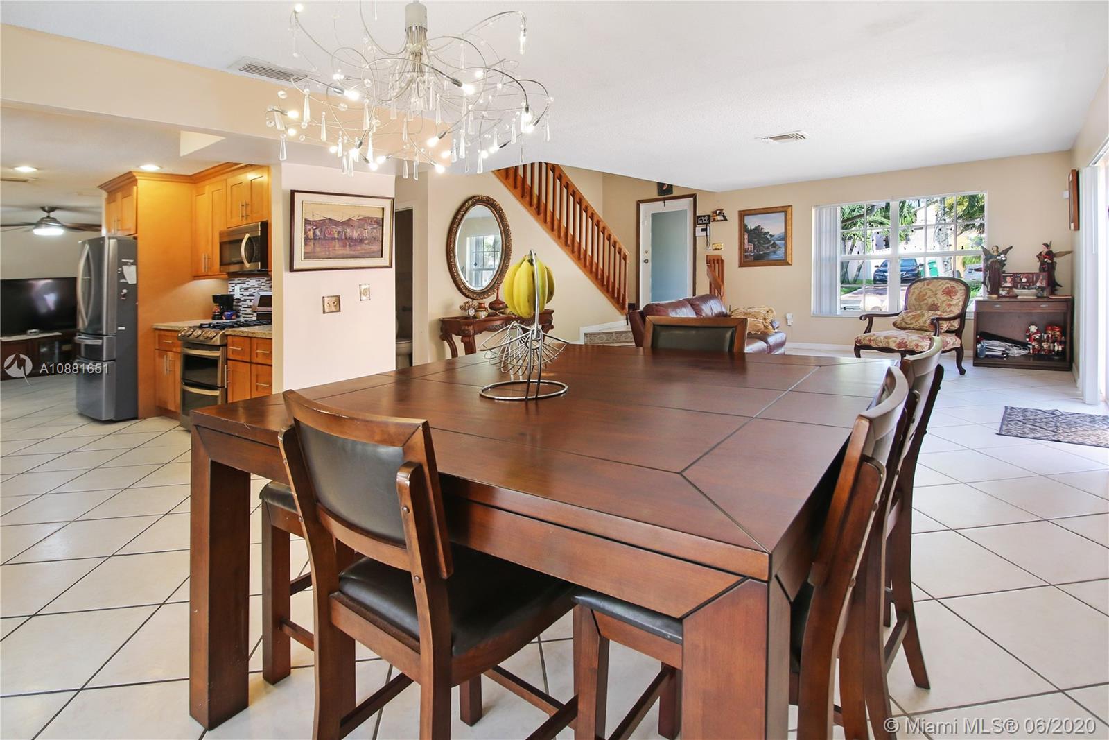 Welcome home! Beautiful front entrance leading into this 4 bedroom 2.5 bathroom single-family home with a stunning contemporary style remodeled chef's kitchen, equipped with gas range, stainless steel appliances and granite countertops. Spacious living room with high ceilings, tiled-floors and ample natural light throughout. Gorgeous hardwood flooring leading from staircase up to second floor. Large enclosed patio space with ceiling fans surrounded by fruit trees, perfect for enjoying the South Florida weather and entertaining guests. Large shed in the back for extra storage. Home has complete accordion shutters, impact doors and impact 2 car garage, ready for hurricane season. All plumbing is PVC. Conveniently located in Hialeah near plenty of shopping and dining. Definitely a must see!