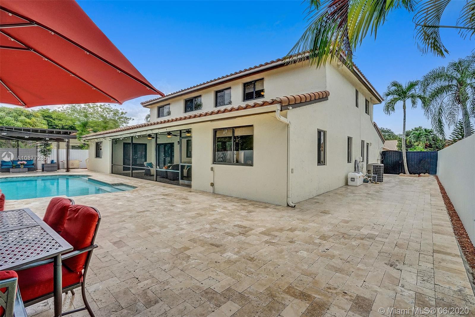 Amazing home completely remodeled by the current owner, 4 bedrooms, and 3.5 bathrooms with amazing pergola/pool in the back patio. The house comes with all complete impact windows and french doors. The first floor comes with a 24 x 24 Spanish ceramic tile. There is a second master bedroom on the second floor. The kitchen has beautiful sparkly quartz with Italian finish cabinets plus Samsung high-end appliances. The oversized master bedroom comes with an upscale freestanding tub with jets/tv. The blinds in the master are automatic that goes up/down with a push of a button. The shower comes with a rainfall showerhead/glass doors. The houses have been painted inside/outside within a year. The entire home comes with cameras and led lighting through.2 new A/C that cools that the entire home.