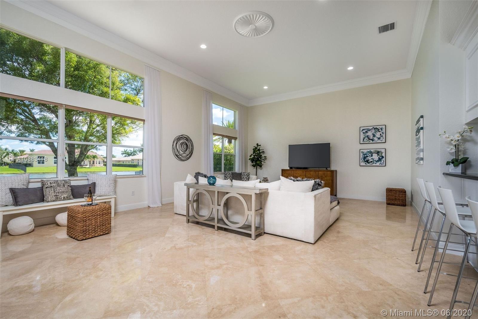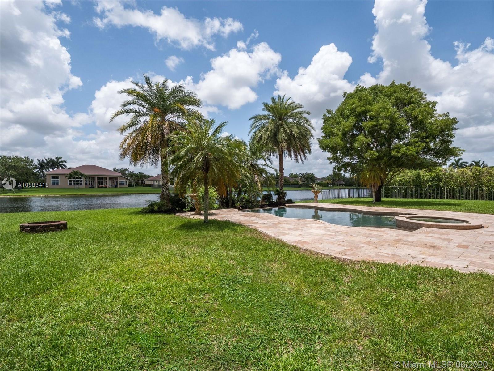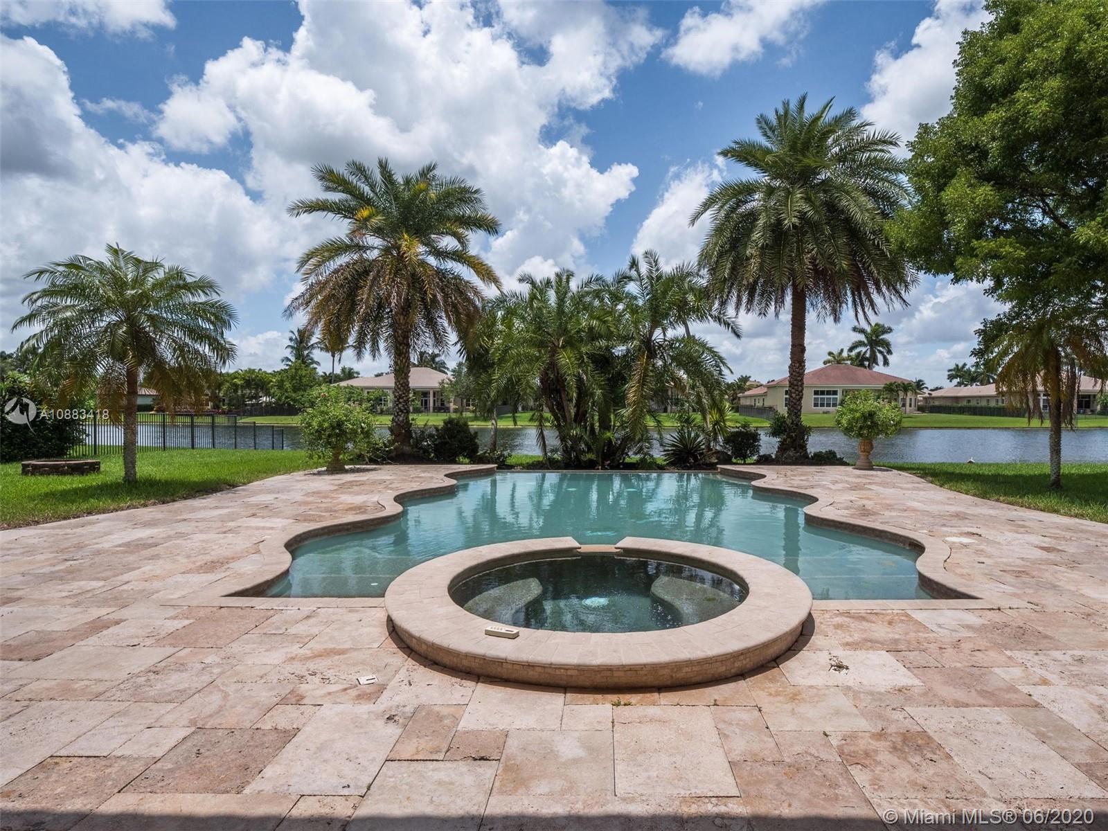 Your search for peace and tranquility is found when you arrive at Riverstone, a Davie community of 308 homes. The community is ensconced within waterways, horse trails, lush vegetation and Vista View Park. A gorgeous offering in the community, the home features a grand entry with soaring ceiling height. The water view is striking as it flows behind the home, brimming with water fowl and life. It is fitting for a large family with 6 bedrooms (1 is an office) and 5 baths. There are multiple gathering spots, for private moments. Enjoy the infinity-edged wave pool and spa, framed in travertine marble. Outdoor moments are seldom interrupted when inclement weather approaches due to an oversized covered lanai. Tennis, basketball, playgrounds available for residents/guests. Come on home!