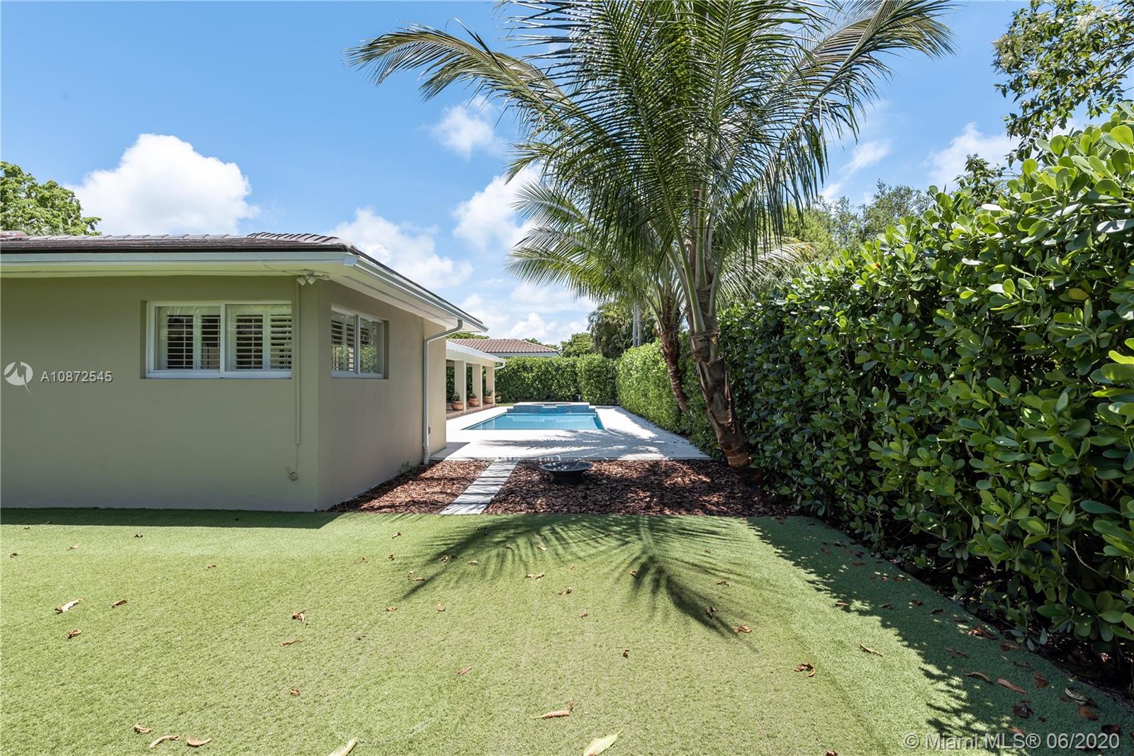 This charming & updated home is located in the guard gated community of Pinecrest By the Sea. Close distance to the best private/public school district in the area. Throughout this beautiful property with an excellent floor plan, you’ll find Brazilian teak wood floors, impact windows & doors, plantation shutters to give it that cozy home feel. With top of the line quality finishes, like brand new flat tile roof, custom built chef’s kitchen, 25x23 bonus room that could be used as a home office/game room, family room with views of the 2016 heated pool & hot tub perfect for entertaining guests or lounging by the pool. Side patio entrance with double Iron gate & Turf grass soccer court. Manicured landscaped, circular Chicago Brick driveway. This home is fit for family and built to last.