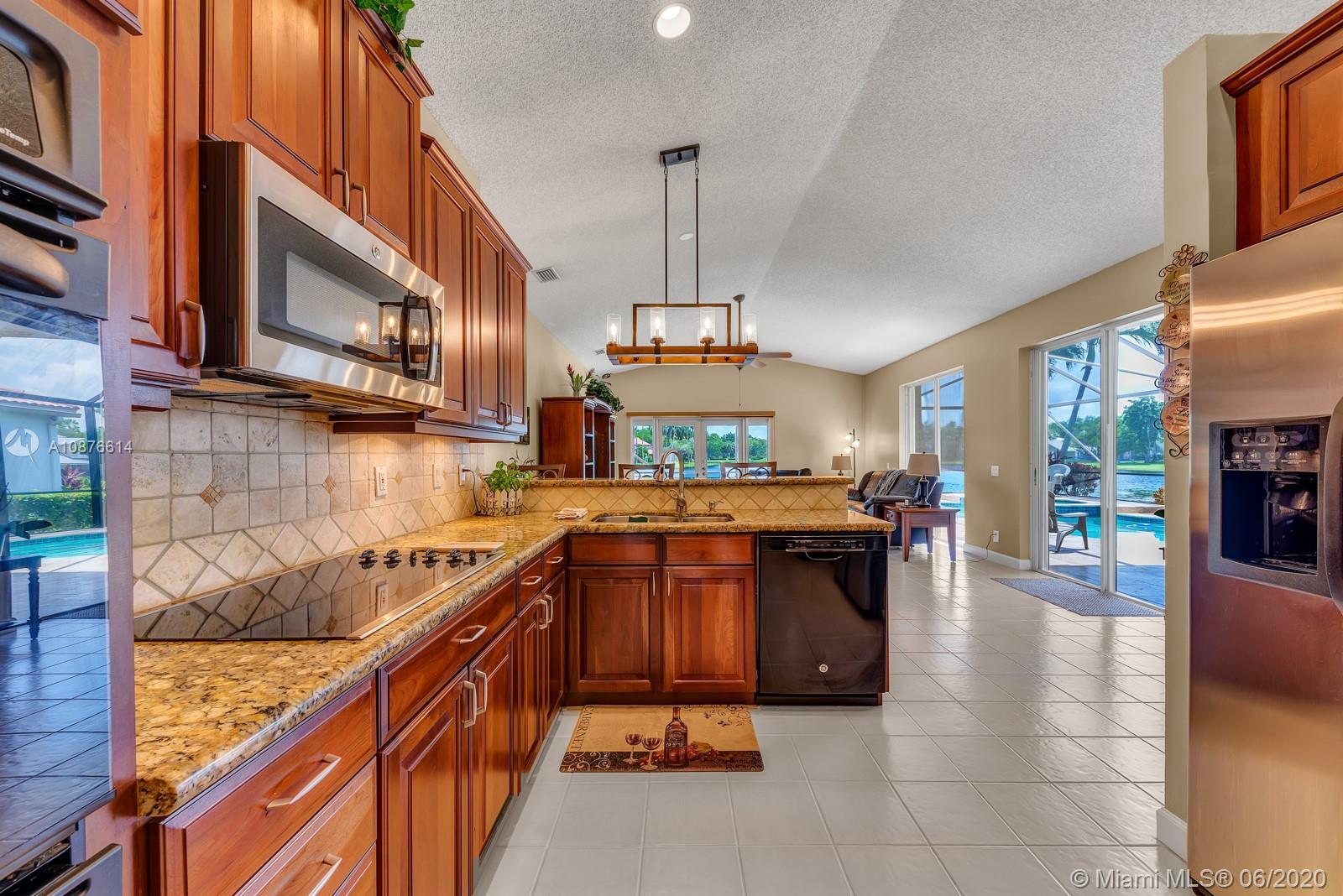 Move-in ready! As you walk into this exceptional home, you will immediately feel relaxed by the expansive, scenic lake view. Step out from any of the three sliding glass doors and enjoy the wrap-around deck area with pristine pool and new screened-in enclosure - perfect for entertaining and enjoying the Florida Sunsets. This house has the best lake view of the neighborhood. The open floor plan has the master bedroom on one side for complete privacy, two bedrooms sharing a bathroom on the opposite side of the house and a fourth bedroom with bathroom at the back of the house – perfect for a home office. This best kept secret in Weston is located in the quiet neighborhood of Waterford Landing with only 70 houses, walking distance to A+ Schools and Weston Town Center. Must see!