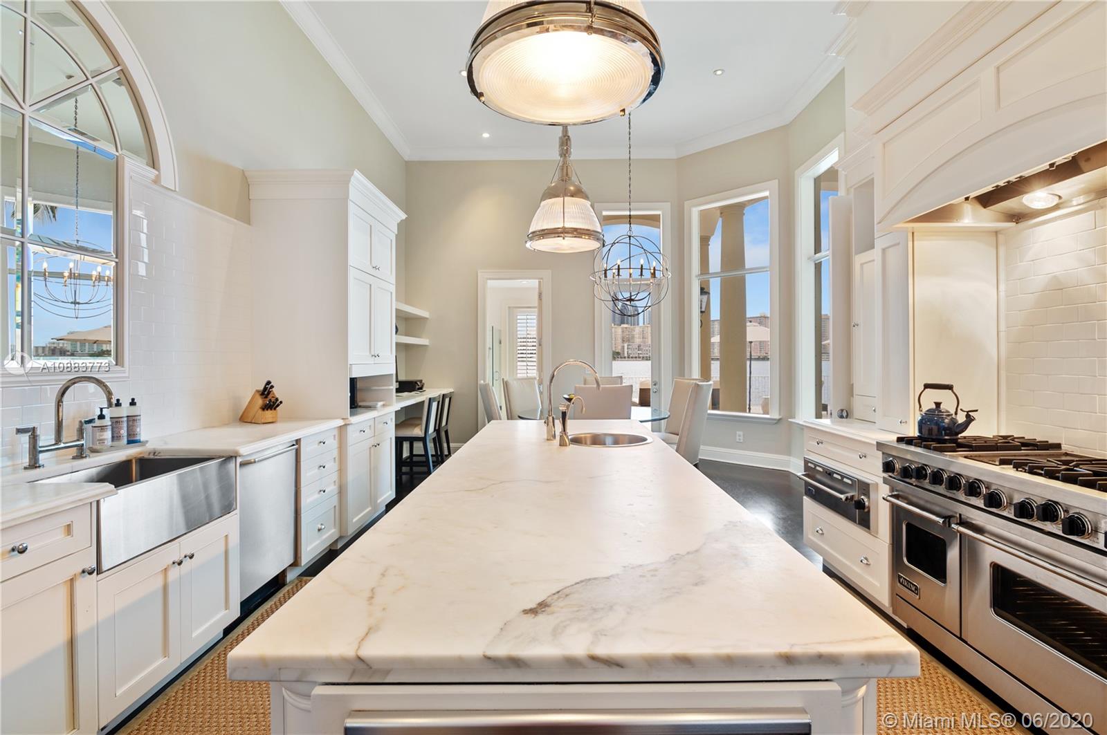 Island Estates-Modern Mansion has 6 Bds, 6.5 Bths 6200+ SQFT,PLUS a 3 car garage, soaring ceilings & vast balconies bringing the home to 7200 SQFT! INCLUDES A 50' ASSIGNED yacht slip!Great for entertaining w/ the formal bar/wine area, vaulted ceilings, wood floors throughout,coiffured ceilings,custom built-ins & open floor plan. Two first floor guest rms w/ full bathrms, LG formal dining rm w/ a custom atrium & fountain, formal living rm, wood burning fire place, separate den, chef's gourmet eat-in kitchen, cabana bath & full laundry facilities on both floors. The grand staircase or elevator will take you to the 2nd fl w/ 2 XL guest bedrms & bathrooms & the vast mstr bedrm & bathrm, custom walk-in closets,HUGE balcony & calming water views. Come experience the home!