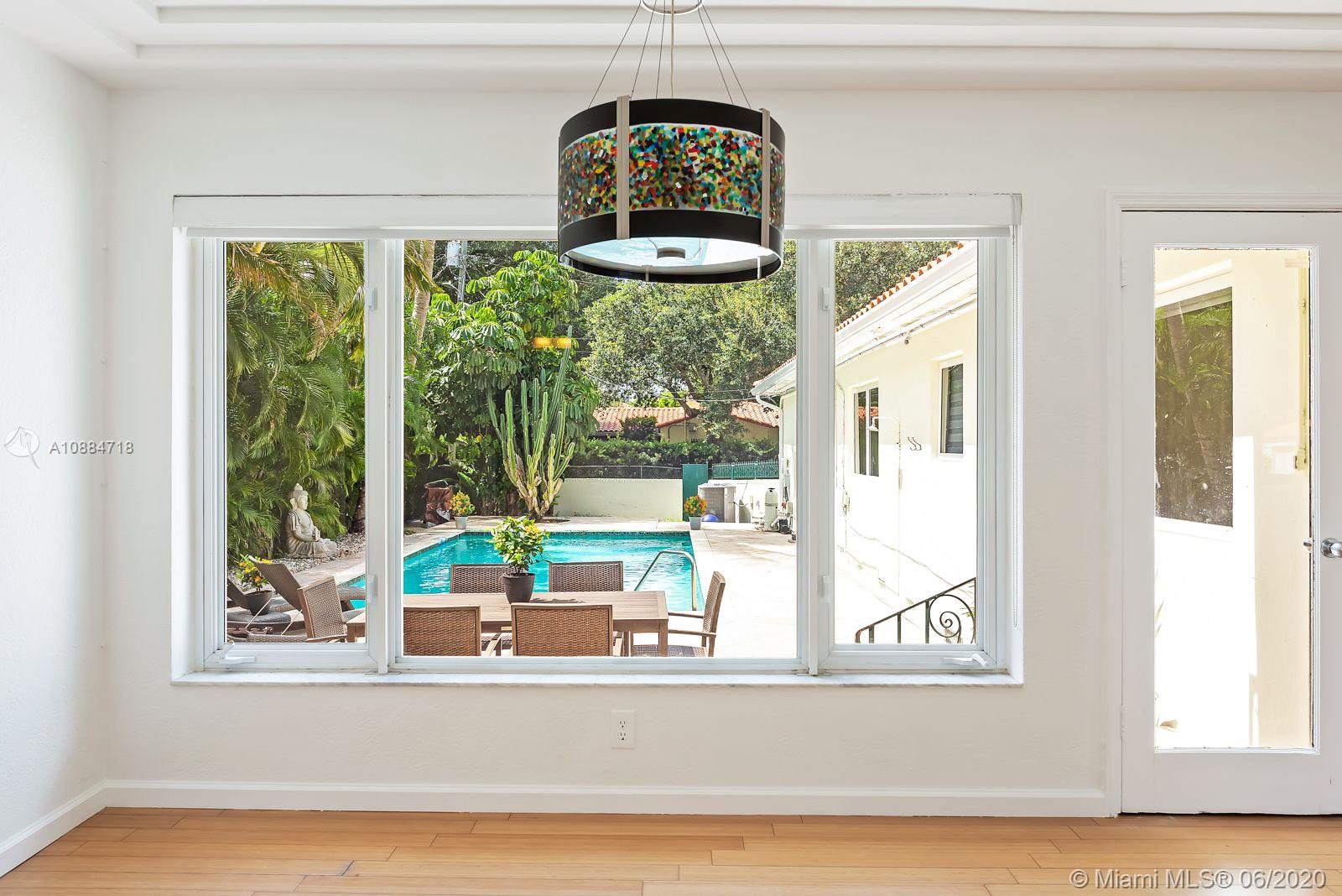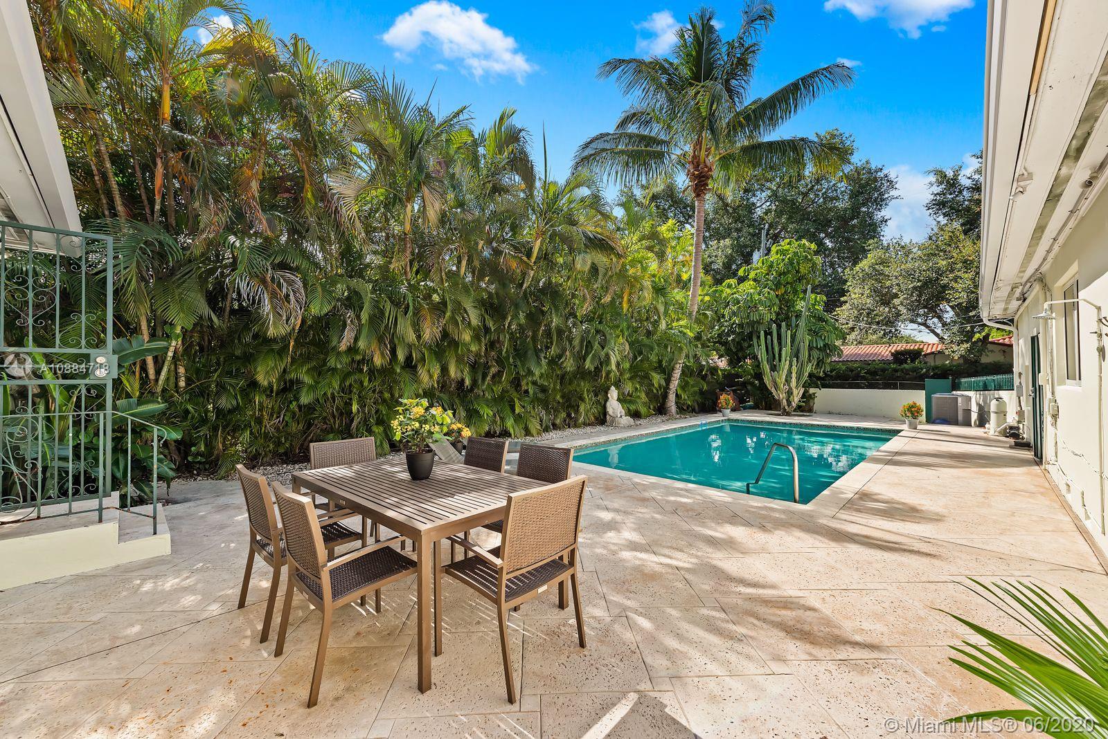 Opportunity awaits in desirable Miami Shores. Oversize windows, sprawling entertainment spaces, and a large pool and patio area are the highlights of this lovely 3 bedroom, 3 bathroom home on a large corner lot. There are Art-Deco influenced tray ceilings in the main living/dining spaces and gorgeous Bamboo floors throughout. One bedroom and bathroom have a separate entrance from the pool patio and there is a one-car-garage. Have it all, a home with lots of indoor and outdoor space on a quiet street and you can still walk to Starbucks.