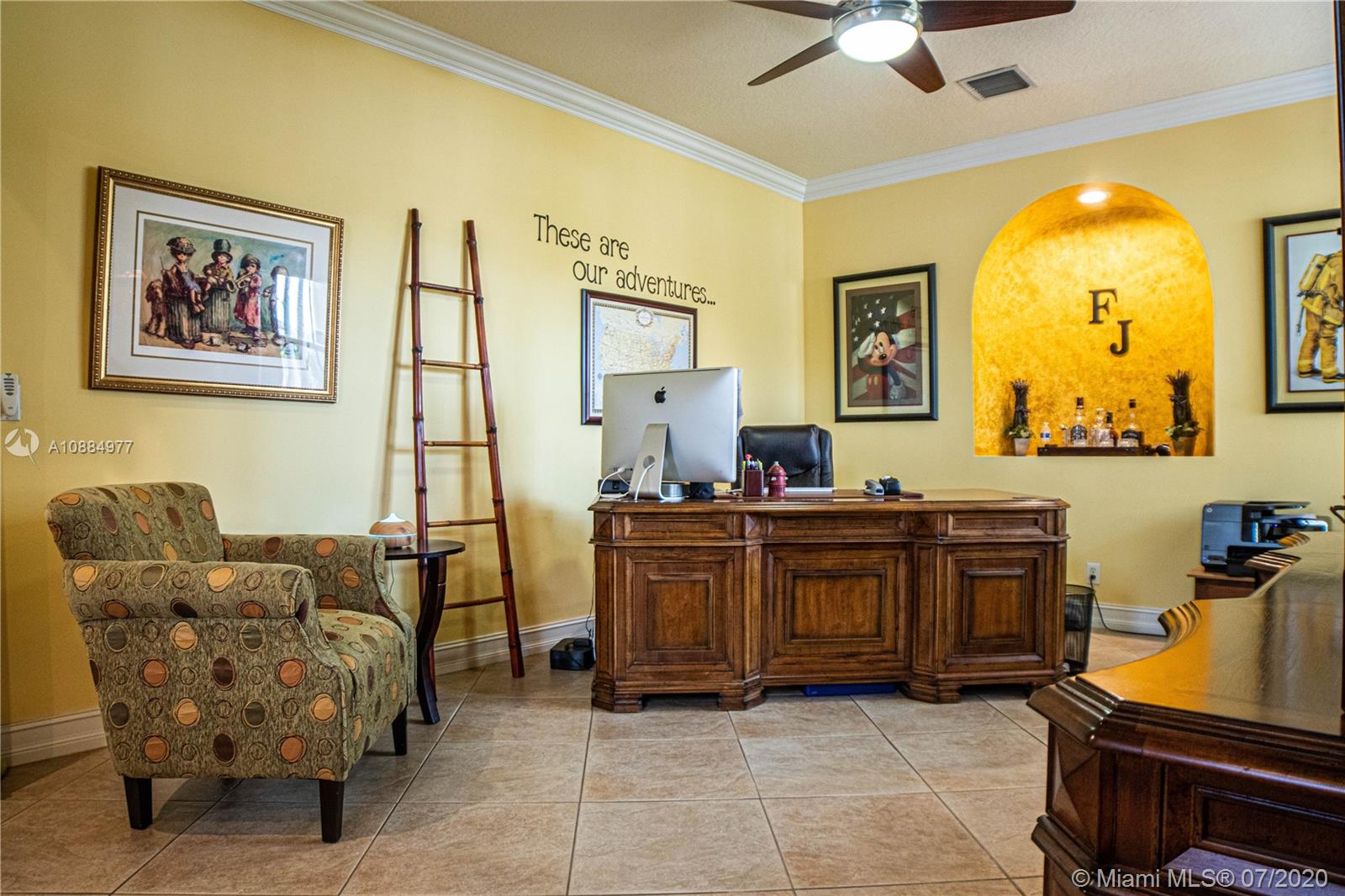 Pride of ownership is obvious the moment you open the doors to this Estate 5/3.5 Pool Home updated throughout. Oversize master w/sitting area. Impact windows, 2 water heaters, 2 A/C's, huge laundry room, crown molding, and gourmet kitchen with beautiful granite tops. Bathrooms have been beautifully updated. Enjoy your own tropical oasis in your private, oversize yard with a tiki hut and a swinging chair overlooking the newly redone pool. Canine turf grass in the backyard with pavers extended to the sides of the house. Oversize circular driveway surrounded by lots of lush palms. This beautiful home was perfectly designed for entertaining inside and out. Master jacuzzi tub has Bluetooth speakers and different color lighting in the water. Pool is also salt system. 3 year warranty on the pool.