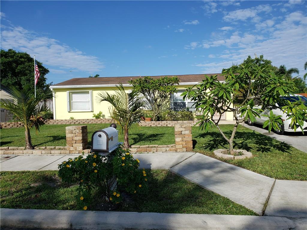 CHARMING 3/2 SFH. LARGE FENCED YARD DOUBLE WIDE DRIVEWAY INTERIOR LAUNDRY-OPEN KITCHEN TO FAMILY ROOM AND DINING AREA ACCORDION SHUTTERS AC INTERIOR UNIT 3YRS OUTSIDE UNIT 9 YRS. HIGH SEER- HWT APPROX 9 YRS. ROOF 13 YRS FLAT ROOF 2 YRS. WOOD AND LAMINATE OVER TERRAZZO FLOORS NO CARPET LARGE SHED STRAPPED 12" INTO CONCRETE PATIO AND PERGOLA PULL DOWN ATTIC STORAGE BATHROOMS RENOVATED WITH BATH FITTERS THIS HOME IS CLEAN AND READY FOR IT'S NEW OWNER