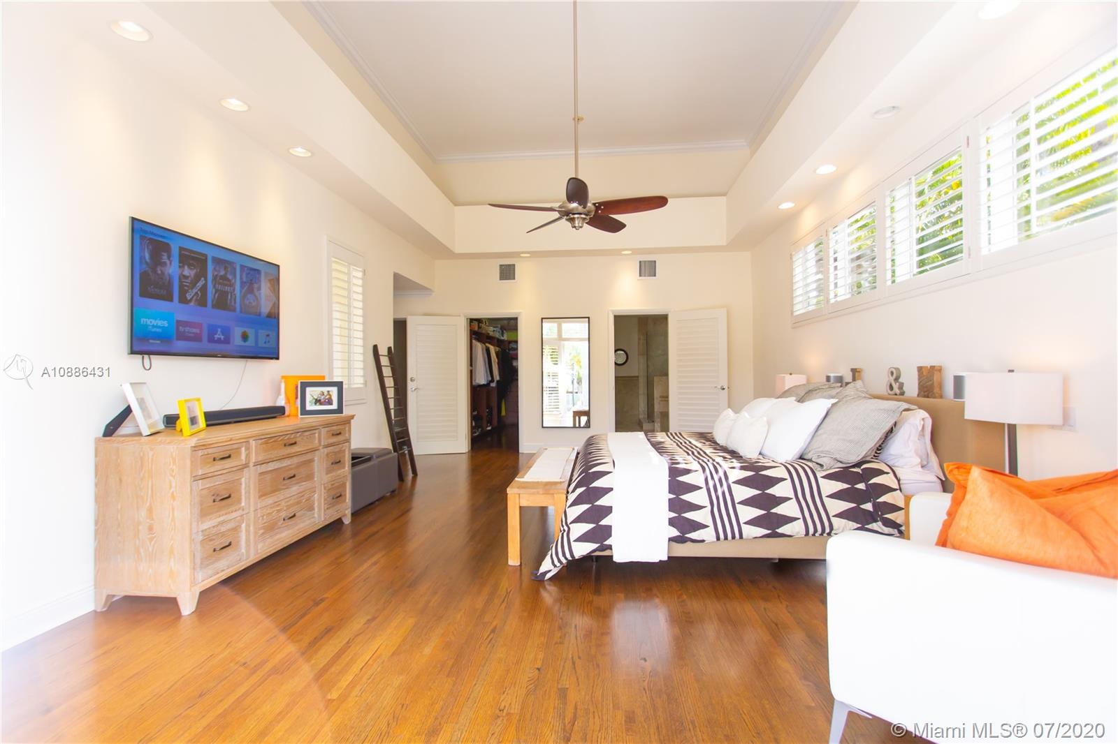 Enjoy the boating lifestyle in this lovely, gated waterfront property. Just a 20 minute wake ride to Biscayne Bay via the Coral Gables Waterway. Light-filled living spaces w/high-end finishes, volume ceilings, fireplace and wood & stone flooring. Floor-plan layout features formal living, dining & family room + staff room. Abundant windows throughout open to a deep covered terrace with water views. Expansive kitchen w/ European-style wood cabinetry, island w/seating, gas range & breakfast area. Grand master suite features sitting area, spacious walk-in closet and luxurious bath w/soaking tub & glass enclosed shower. Enjoy entertaining in the resort-style outdoor area w/spectacular pool & Jacuzzi overlooking the water & private dock with boat lift. Lowest clearance of bridges to bay is 10'
