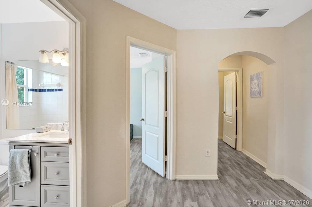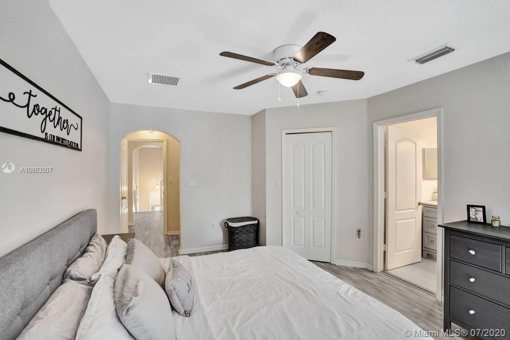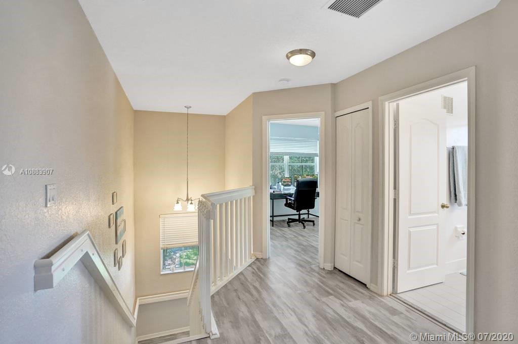 This is the largest model in the gated community of Melrose Point. As you step into the private corner entrance you will be welcomed by a bright and spacious layout with formal dining room, living room, and family room. The kitchen has ample cooking space, wood cabinets, and matching black appliances and granite counters. The kitchen snack counter wraps around into the family room, making it a perfect place to entertain family and friends. Laminate flooring on the second floor where all three bedrooms are located. Master suite includes a foyer entry, private balcony, walk-in closet, and recently upgraded bathroom. In addition, hurricane shutters for all entry points, assigned parking and guest, community pool, clubhouse, exercise room, and tot lot.