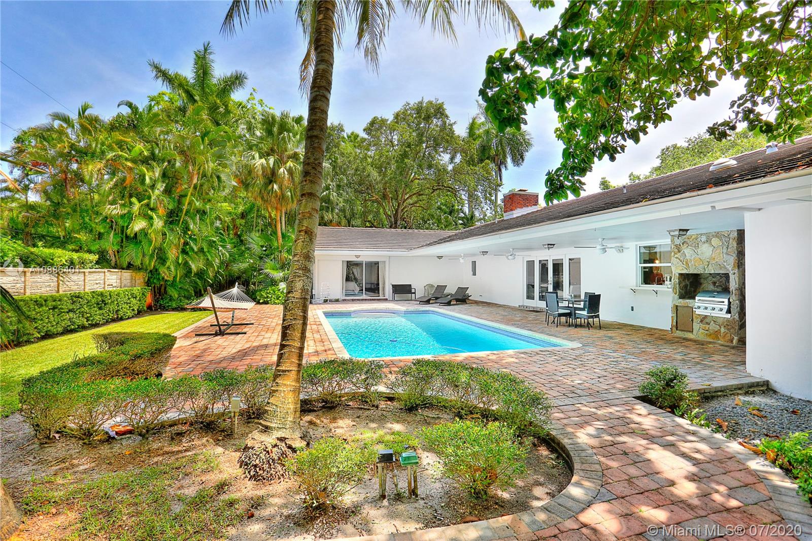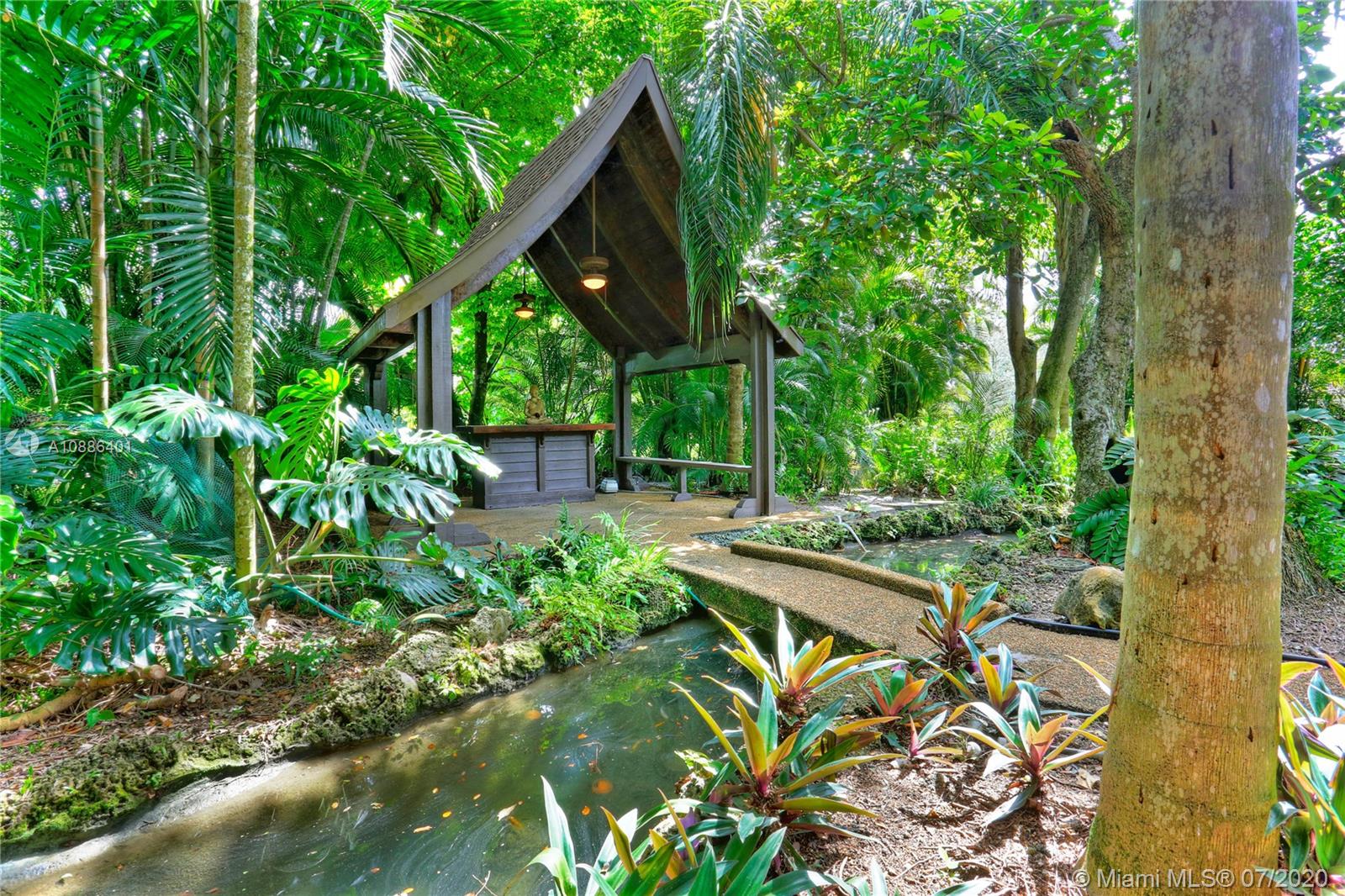 Absolutely beautiful & updated builder’s acre home on gorgeous S. Gables cul de sac! This 5-bd, 4-ba home features an open floor plan w/ large picture windows, lots of light, sophisticated modern finishes, & new roof. Offers a gorgeous living, dining & family room, porcelain tile floors & recessed lighting. The new modern kitchen sets the stage for this special property, anchored w/ a large island facing the pool, SS appliances, quartz countertops, & walk-in pantry. The master suite features lovely views & access to pool patio, oversized sitting area w/ access to serene garden, 2 walk-in closets, & master ba w/ open shower, Jacuzzi, double vanity, garden & privacy wall. True backyard oasis w/ Zen garden, koi pond, meditation space, covered terrace w/ grill. Large driveway & 2-car gar.