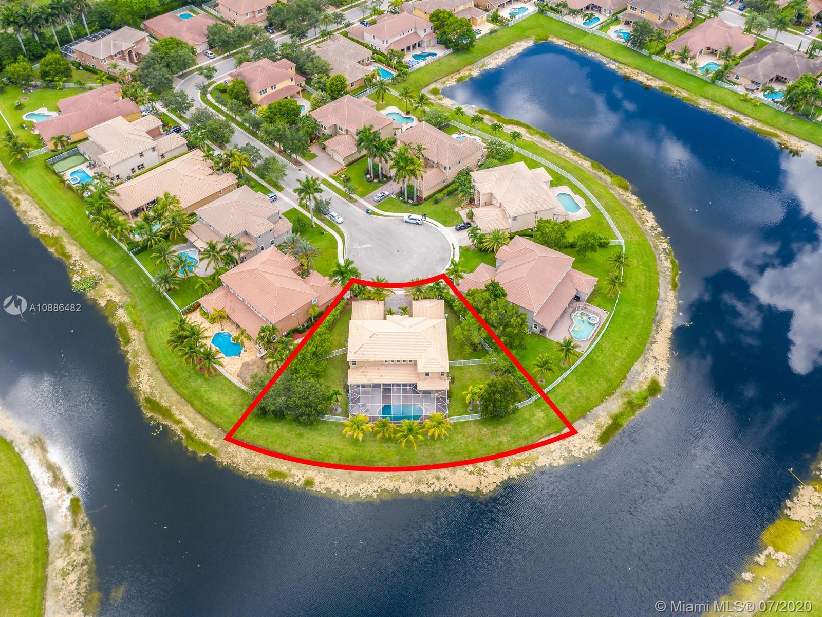 Enjoy Florida’s lifestyle on this PERFECT PARADISE estate! 6 BEDROOMS+OFFICE+LOFT / 5.5 BATH on the LARGEST and most spectacular CUL DE SAC POINTE WATER lot in all of the Isles at Weston. SCREENED POOL w/covered patio, FULLY FENCED, private landscaped yard. PANORAMIC LAKE views. This grand MONTEGO model boasts over 5,000 sqft that has it all! Open floor plan w/soaring ceilings, family room, breakfast area, beautiful gourmet kitchen with s/s appliances & granite counters/wood cabinets, huge walk-in pantry, wine cooler, large laundry room. WOODEN floors/CUSTOM built-in closets in all bedrooms. PLANTATION SHUTTERS, French doors. OVERSIZED Master Bed downstairs, TWO-DOUBLE car garages, accordians, RENOVATED club house w/GYM, Gated, A+ SCHOOLS. Don’t miss this opportunity to live in the SHORES!