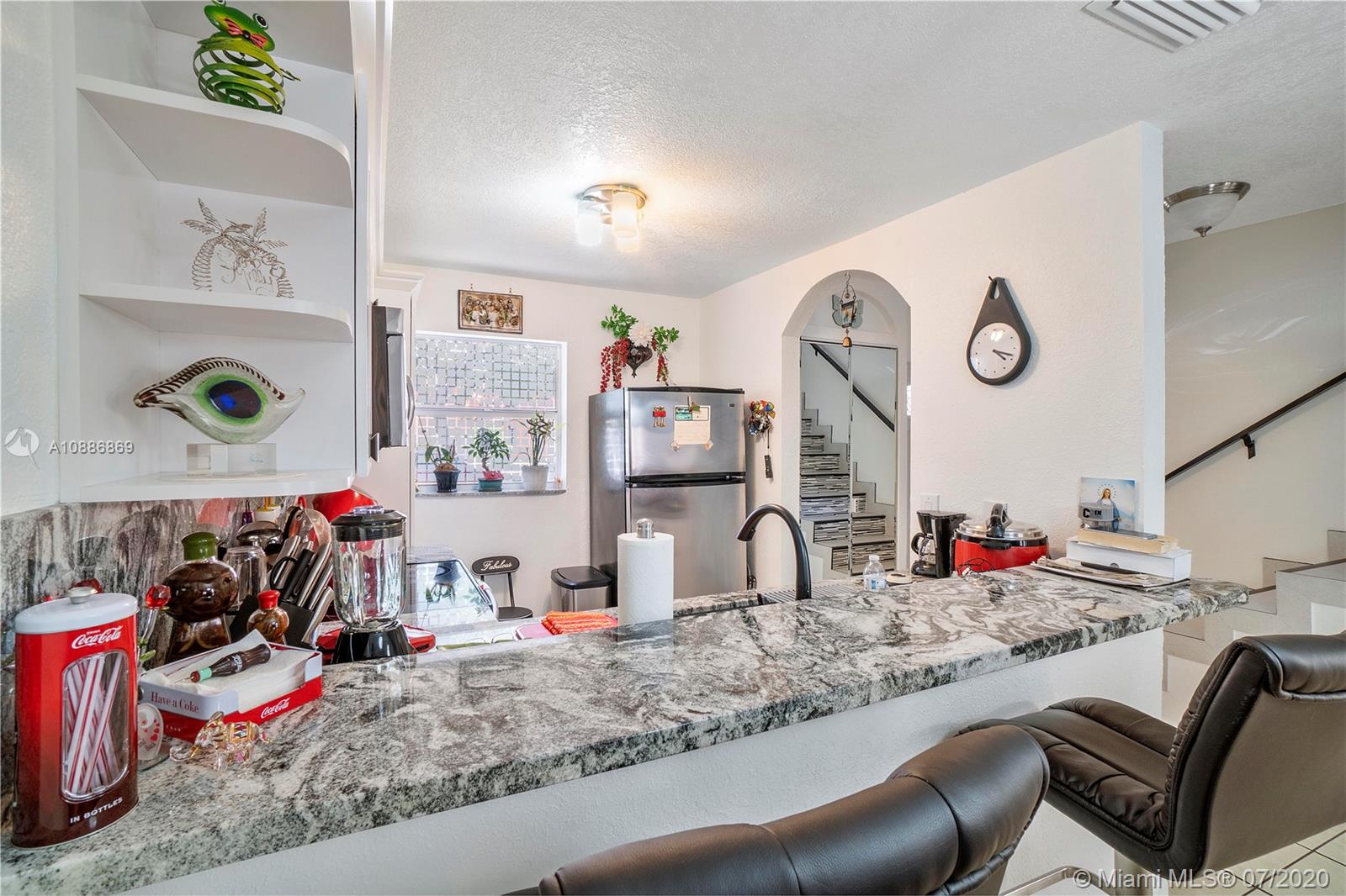 Your place to call home! This is a fully updated 2/1.5 Corner Unit townhome in Ludlam Village with 2 assigned parking spaces. This home features a New Kitchen with white cabinetry, gorgeous granite countertops and Stainless Steel Appliances. Updated flooring. Newer A/C. New Oversized Washer and Dryer in home. Near all major highways for easy commuting, Westland shopping mall, restaurants and more. Oversized exterior patio with CUSTOM BUILT BBQ GRILL, 2 storage sheds, metal patio roof for entertaining and tile flooring. Home also features FULL HURRICANE PROTECTION SHUTTERS for insurance credits and VERY LOW HOA FEE. Call now to tour your new home!