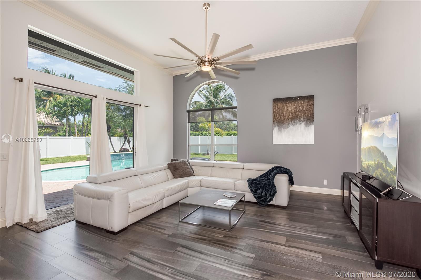 MAGNIFICENT "LENOX" MODEL LOADED WITH UPGRADES * CONTEMPORARY RENOVATED HOME FEATURING 4 BEDROOMS + DEN & 3 BATHS * FULLY UPGRADED & REDESIGNED CHEF'S KITCHEN W/ KRAFTMAID CABINETRY, GORGEOUS GRANITE COUNTERTOPS, SS APPLIANCES, UPDATED BACKSPLASH, DOUBLE OVEN plus SAMSUNG ‘FAMILY HUB’ REFRIGERATOR ** EXTENDED PATIO OVERLOOKING BEAUTIFUL INVITING POOL, PERFECT AREA TO ENTERTAIN YOUR FRIENDS AND FAMILY ** WOOD-LOOK MODERN PORCELAIN TILE FLOORS THROUGHOUT HOUSE AND WOOD FLOORS IN BEDROOMS & OFFICE * LED LIGHTS THROUGHOUT, SPECTACULAR CHANDELIERS IN FOYER, DINING AND MASTER BATH * CIRCUIT AND WIRING FOR ELECTRIC CAR CHARGER * NEWER HIGH EFFICIENT A/C UNITS ** AND MANY MORE UPGRADES... "EVERYTHING YOU NEED" GATED COMMUNITY W/ AMAZING RECREATION CENTER * HOA INCL CABLE, INTERNET, ALARM & MORE!