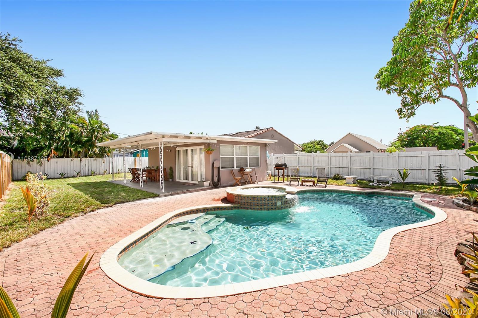 If you're looking for a renovated pool home with a beautifully renovated IN LAW quarters, you just found the right place. The main house is completely updated (1,297sqft) with a new kitchen, granite counters and stainless steel appliances. Impact windows in the front of the house. New central air. The main house is a 3-bed., 2-bath with porcelain flooring in the main areas and huge master bedroom and wood in 2 of the bedrooms. Both bathrooms are designer upgraded. Enjoy your amazing private yard with BBQ's and poolside parties with a spa waterfall. Separate In-Law quarters (446sqft.) has also been updated with porcelain flooring, new kitchen and bathroom. All work has been done with permits. This property sits on a double lot. Opportunity for re-development.