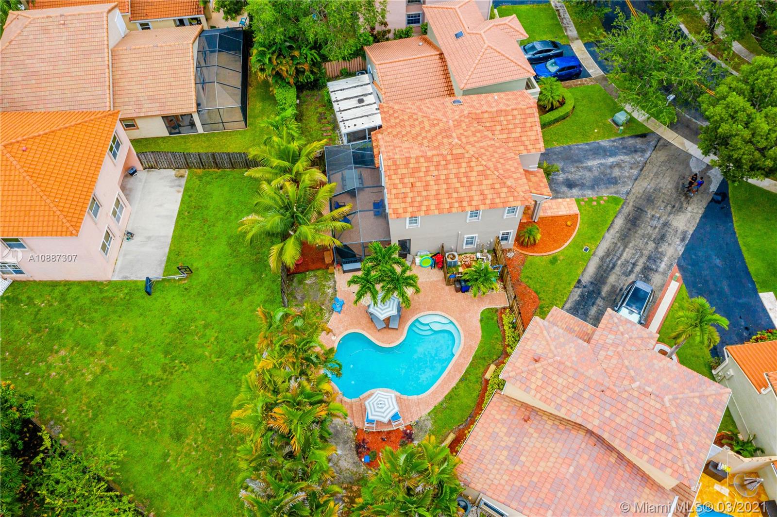 Beautiful two-story home in highly sought after Trellises at Embassy Lakes. 3 bedrooms and 2 bathrooms upstairs, one half-bath downstairs. Updated kitchen with granite countertops, large cooking island and stainless steel appliances. Remodeled master and half bathrooms, neutral floor tiles throughout and laminate wood flooring on second floor. Oversized corner lot has ample space for relaxing and entertaining with a completely fenced-in yard, bean-shaped pool with waterfalls and a screened enclosure. Accordion hurricane shutters, roof tiles four years old. Exterior of the home repainted last year. Amenities include clubhouse with Olympic pool, gym, tennis, playgrounds and bike/run paths. Best A rated schools around, just a short walk to Embassy Creek Elementary, shops and restaurants.