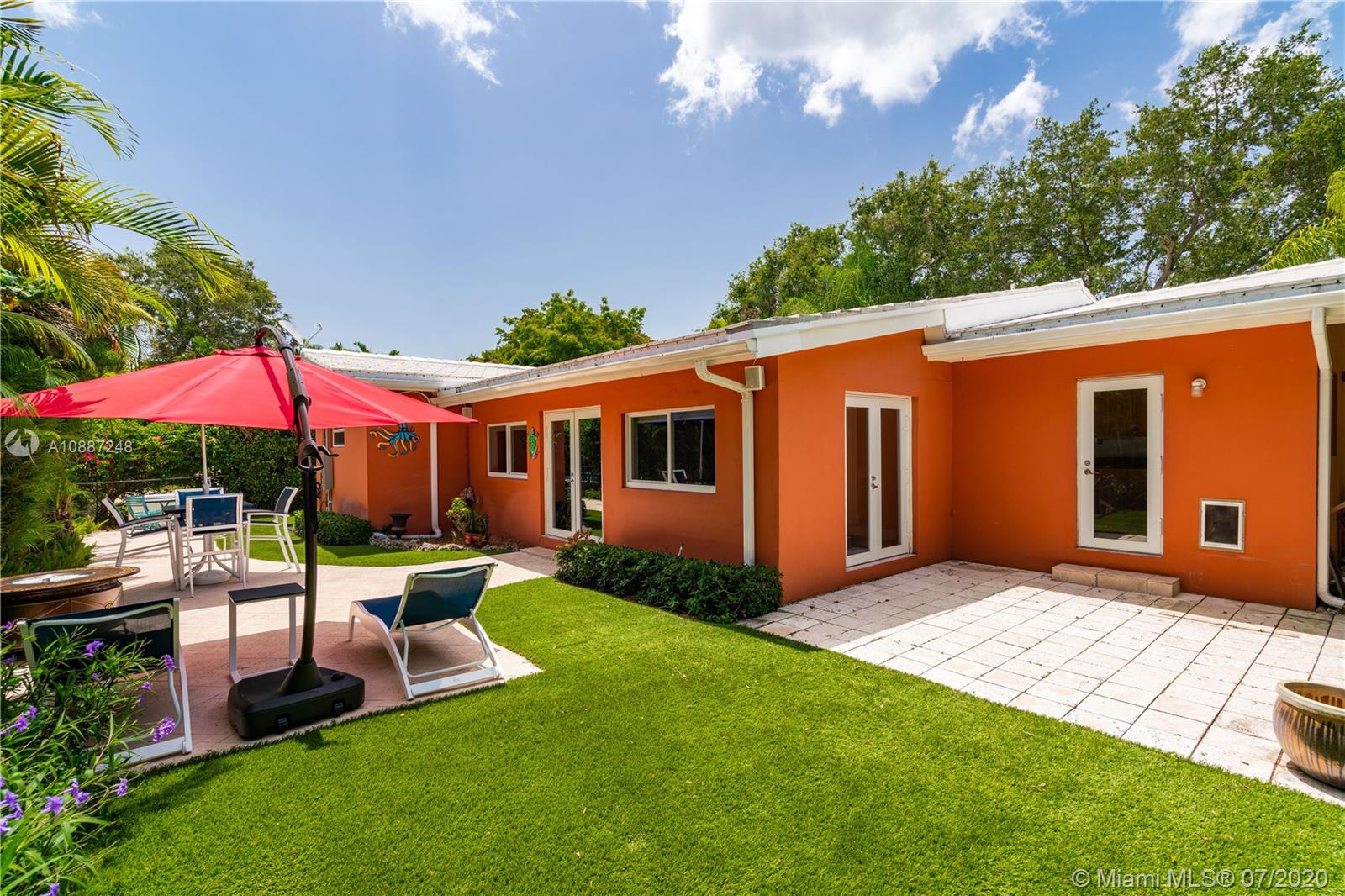 1445 Alegriano is located on a canopied, tree-lined street in beautiful Coral Gables. This tasteful,updated, elegant home is the perfect blend of comfort and style with total square footage of 2629 on the Miami-Dade tax roll. Remodeled in 2005, it is hurricane ready with impact glass and a full home generator! Large, gracious main living spaces with plenty of natural light overlook a charming, private garden.Two-car garage! Warm, wood-beamed ceilings provide a cozy media room. An eat-in kitchen with warm, oak cabinets has plentiful storage and room for a crowd. The bathrooms have been updated with a cool European/contemporary vibe. Two custom closets in the main bedroom. This home provides easy-living in a 10+ location with close proximity to UM. A Very Special Home.