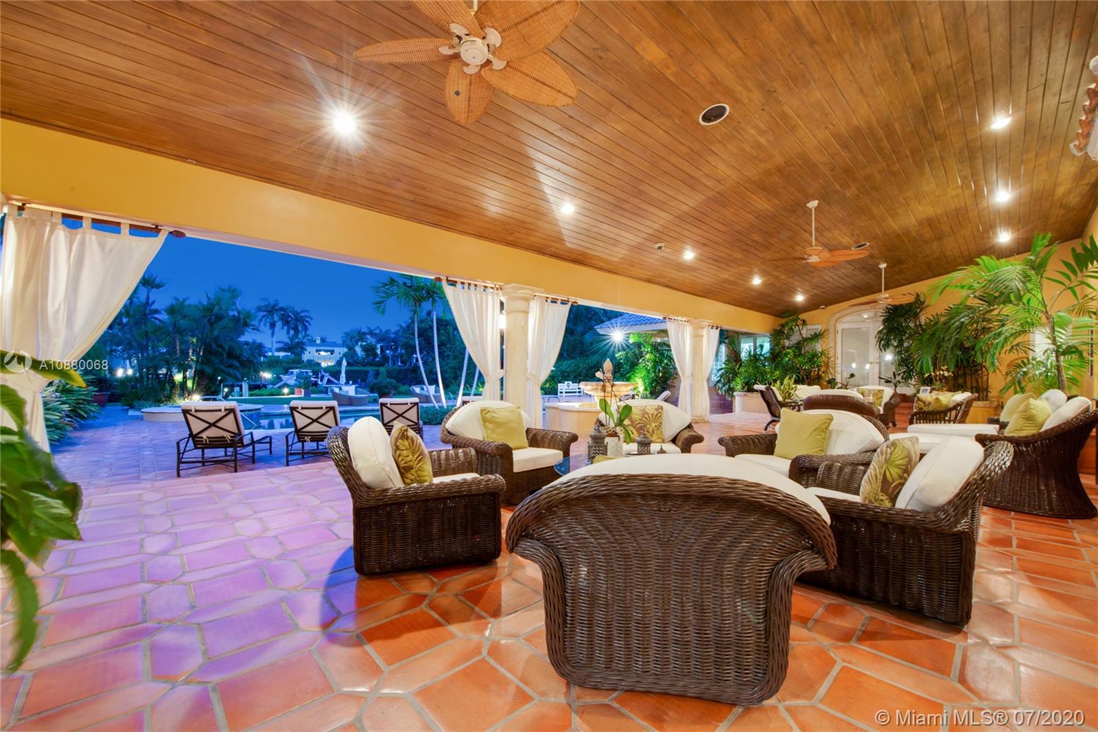 Waterfront coveted 1 story house in Cocoplum I gated community. Brick circular driveway with porte cochere. Transitional/Mediterranean style. Honed limestone and wood floors. 5 bedrooms, 5 1/2 baths and 2 car garage, with additional office and playroom. Expansive main suite and marble bath with dual sinks overlook the water. High ceilings throughout the house. Corridors are wide to display art. Security cameras. Meticulously maintained. One of the largest covered terraces in the community with Summer Kitchen and large dive in pool. Lot is .73 acres and dock is 80 feet with davits. 138 ft water frontage. Expansive wide canal water views from almost every room in the house. Only minutes to Key Biscayne by boat and close to Downtown, C. Grove and the Beaches. Enjoy the best of coastal living.