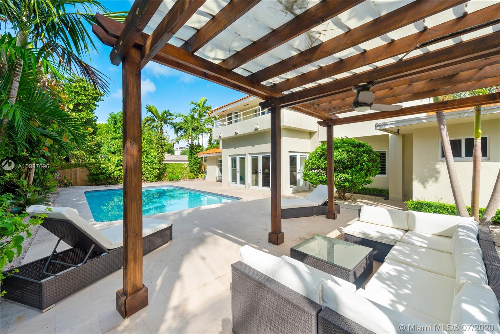 Immerse yourself in the island lifestyle that Key Biscayne offers in this charming home. Located on a very quiet cul-de-sac, this home offers serenity and extra privacy with front gate and fenced wall surrounding the property. From the moment you enter, you’ll notice the extraordinary amount of natural light. This 5 bedroom, 3 bath home is ideal for families as it offers large bedrooms, ample closet space and a favorable floorplan. Unwind on the balcony just off the master bedroom overlooking the pool. The kitchen and family room both offer direct access to the expansive terrace and pool, perfect for entertaining all year long. Enjoy time spent relaxing in this Key Biscayne gem surrounded by lush foliage. Beach Club Membership included. Call to schedule your appointment today!