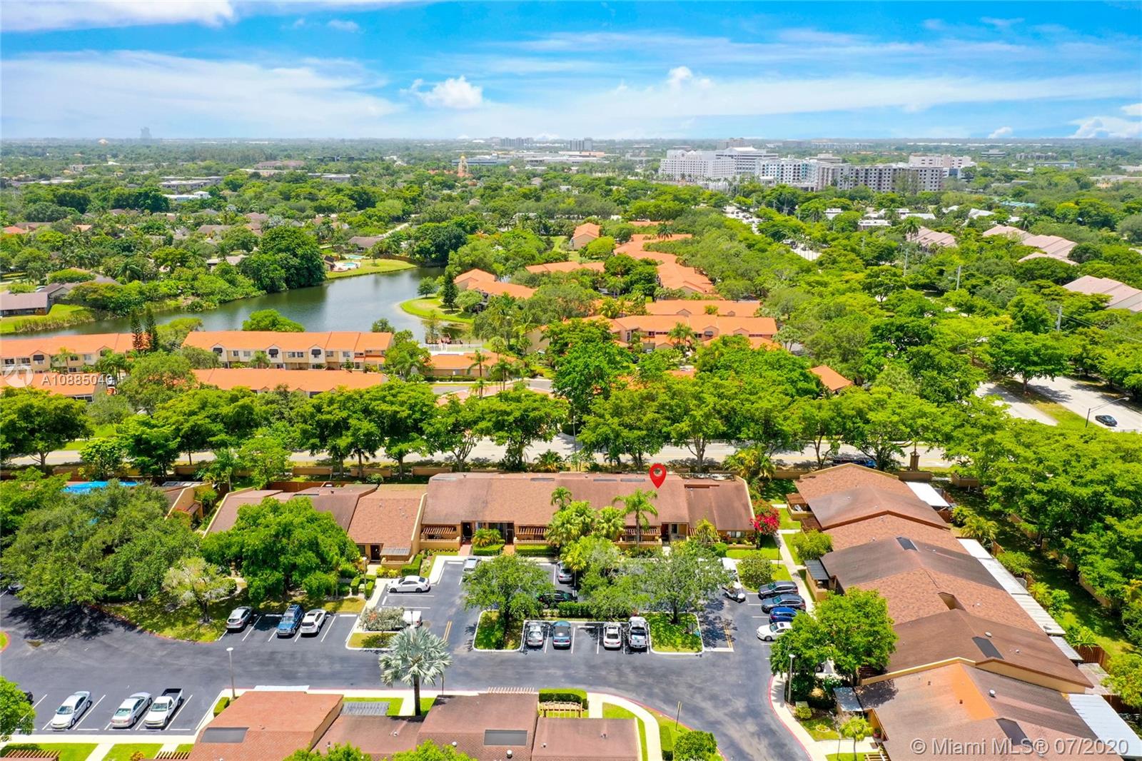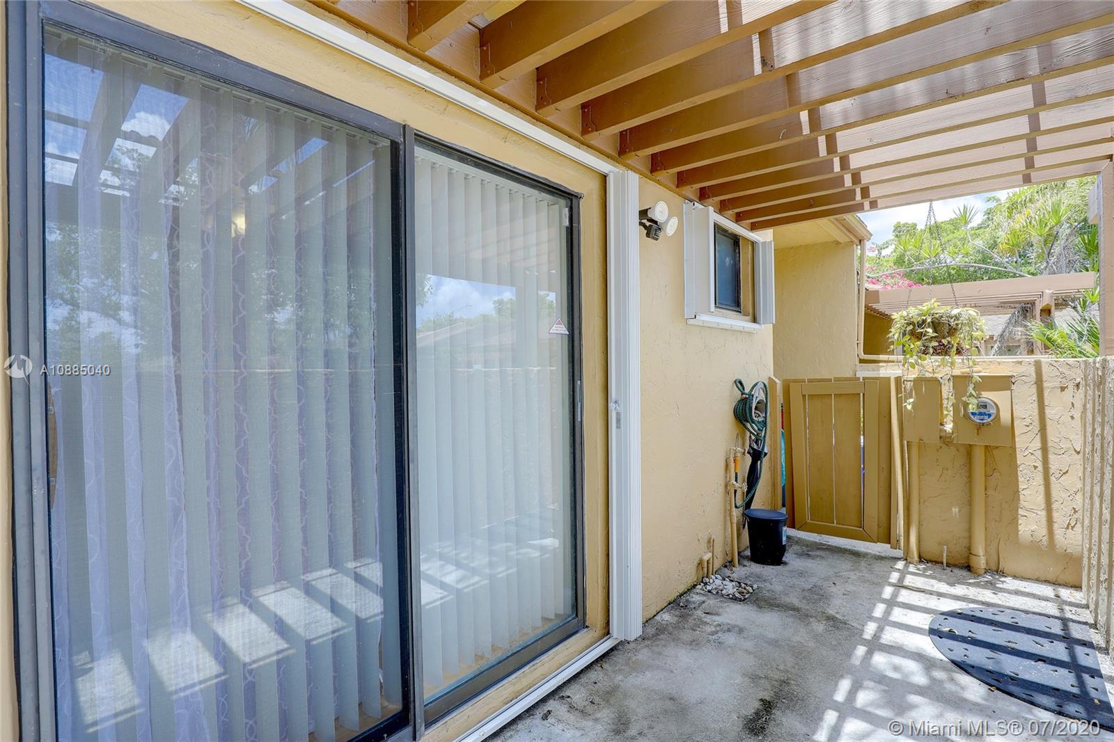 This updated 2 bed, 2 bath with a large den, and center garden area is perfect for relaxing after work or entertaining with friends. The kitchen has new cabinets with granite countertops and beautiful tile floor throughout the open living area. Ceramic floors 2015, renovated kitchen with new appliances and granite countertops 2015, ceiling popcorn removed 2015, master bathroom renovated 2018, Atrium deck area With turf 2020, Bookshelf in den 2015, and tool shed inside the screen area 2019, Smart AC thermometer Nest upgraded 2019. Heater 2017, There is a private screened-in porch and small grassy area for 4-legged family members. Backyard fence 2017.