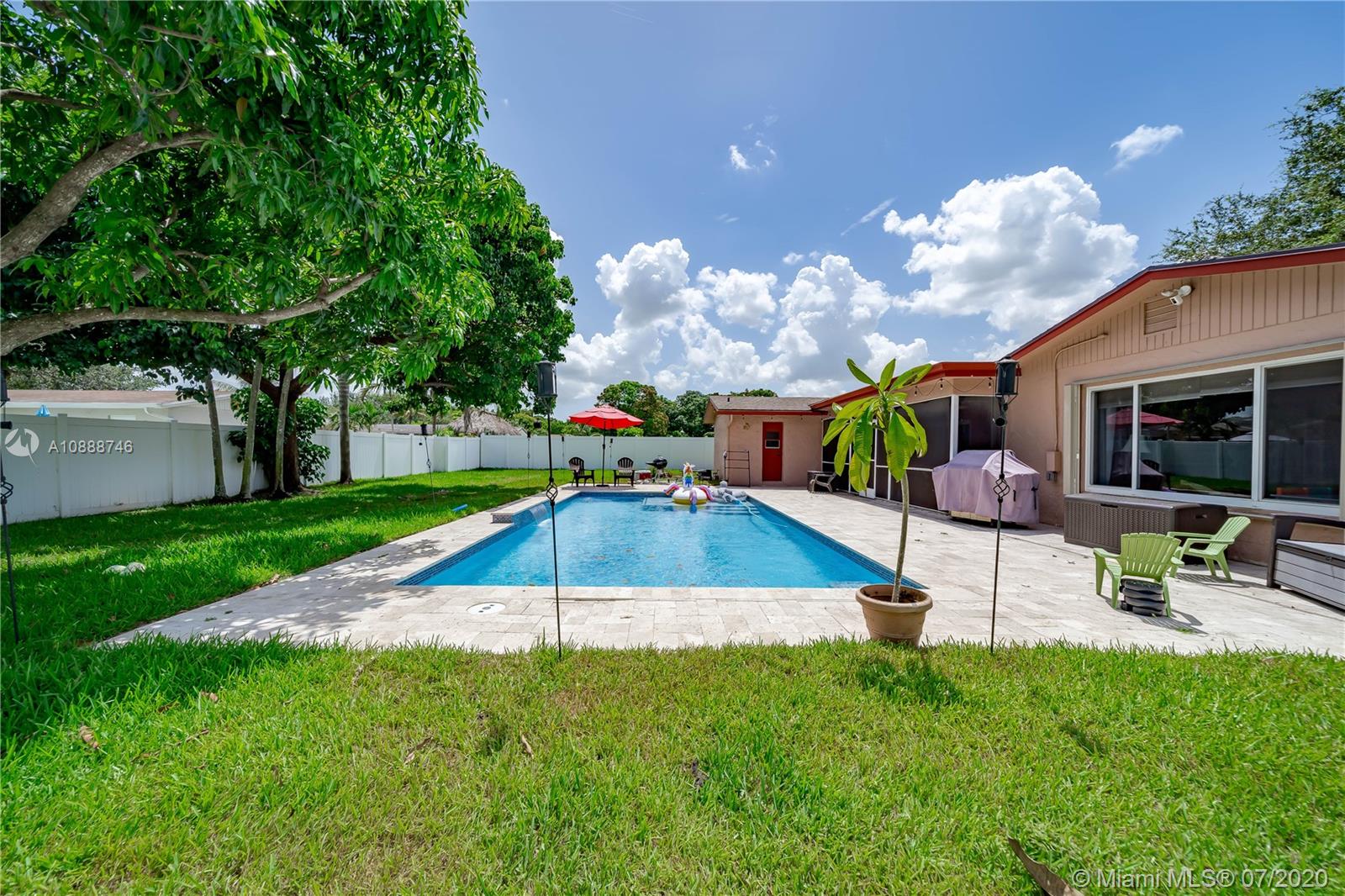 Your personal paradise awaits you in the beautifully tree lined community of Royal Palm South in Plantation w/ NO HOA!! On one side of the home you can find 3 large bedrooms & 2 updated bathrooms w/ stunning finishes. On the other side of the home you will find your entertaining spaces including your open concept modern kitchen w/ dark wood cabinets & white quartz counter-tops. Step outside into your screened covered patio & find the pool of your dreams that was installed in 2017 complete with a sun deck, surrounded by travertine marble pavers, plenty of grass & fruit trees! The home has all impact windows & doors in addition to accordion shutters w/ a 3 year new roof! Located just off of 595 for easy access to all major highways, close to grocery stores, restaurants & shops!