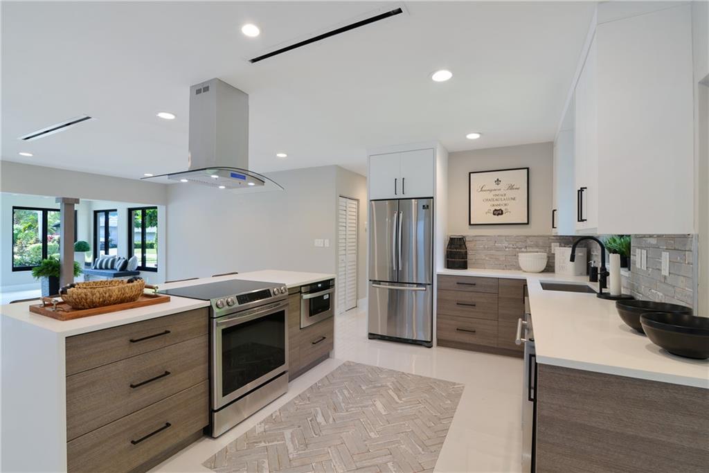 STUNNING REMODEL on the edge of beautiful Rio Vista! This charming bungalow is beautifully designed for today's savvy buyer with UNIQUE DESIGNER DETAILS inside and out! GORGEOUS CYPRESS HARDWOOD graces the exterior of this lovely home making it a stand-out in this charming neighborhood! Gracious open concept, gleaming porcelain tile floors, and chef's kitchen w/waterfall island! QUARTZ countertops, SAMSUNG appliances, built-in BEVERAGE/WINE COOLER, cozy breakfast nook, and urban brick details grace the fabulous kitchen. NEW ROOF, NEW A/C, IMPACT WINDOWS, large covered PATIO, HUGE dining room, INDOOR LAUNDRY ROOM, BUILT IN CLOSETS, FULLY FENCED YARD, and YES!!...ROOM FOR A POOL!! Attached GARAGE with storage! Near BEACH, BOATING, EVERYTHING! A FABULOUS LOCATION! This is your DREAM HOME!